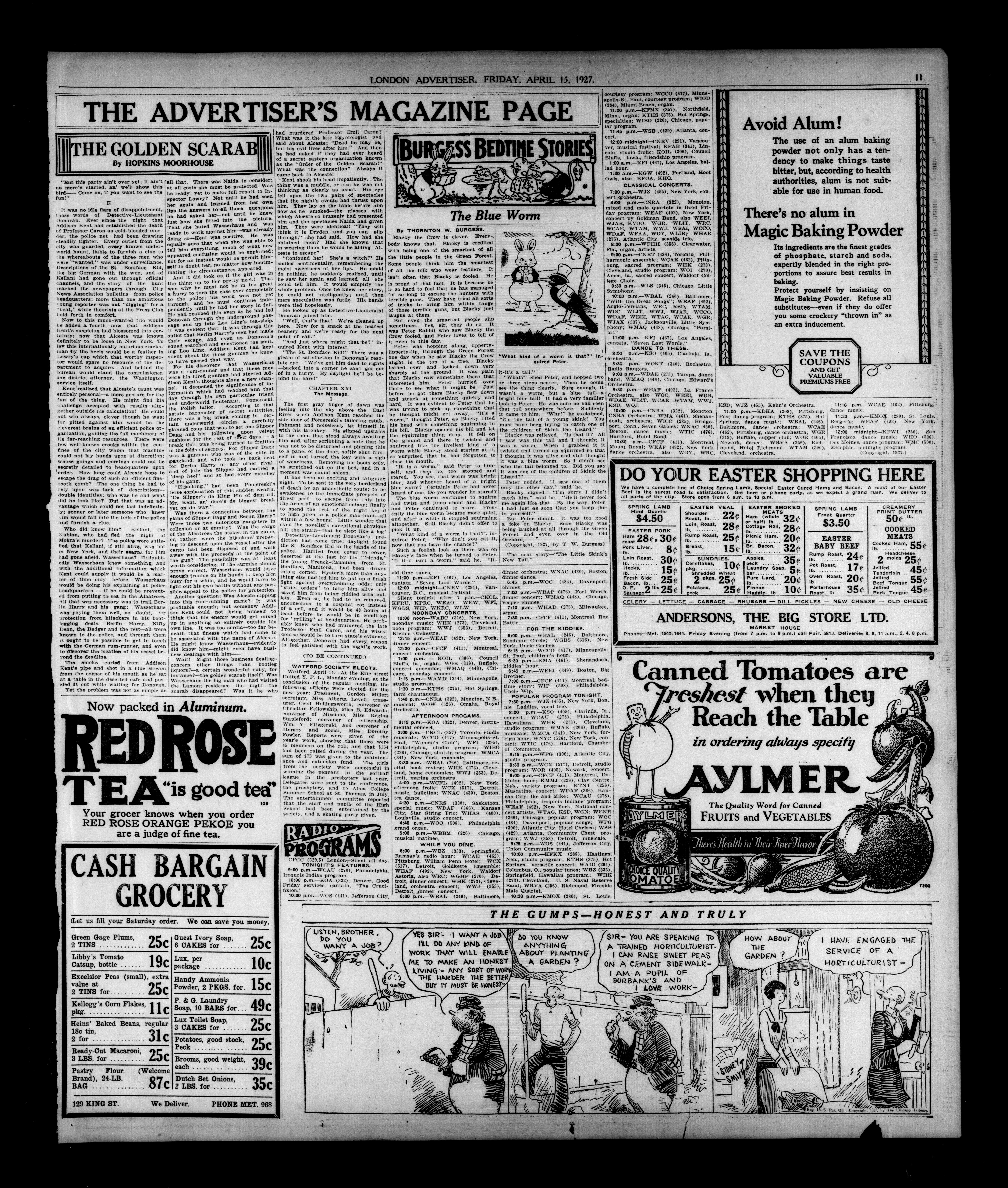 Aide London, Ontario : London Advertiser Company, Limited, [1927]; 12 images, 0 avec recherche en texte intégral