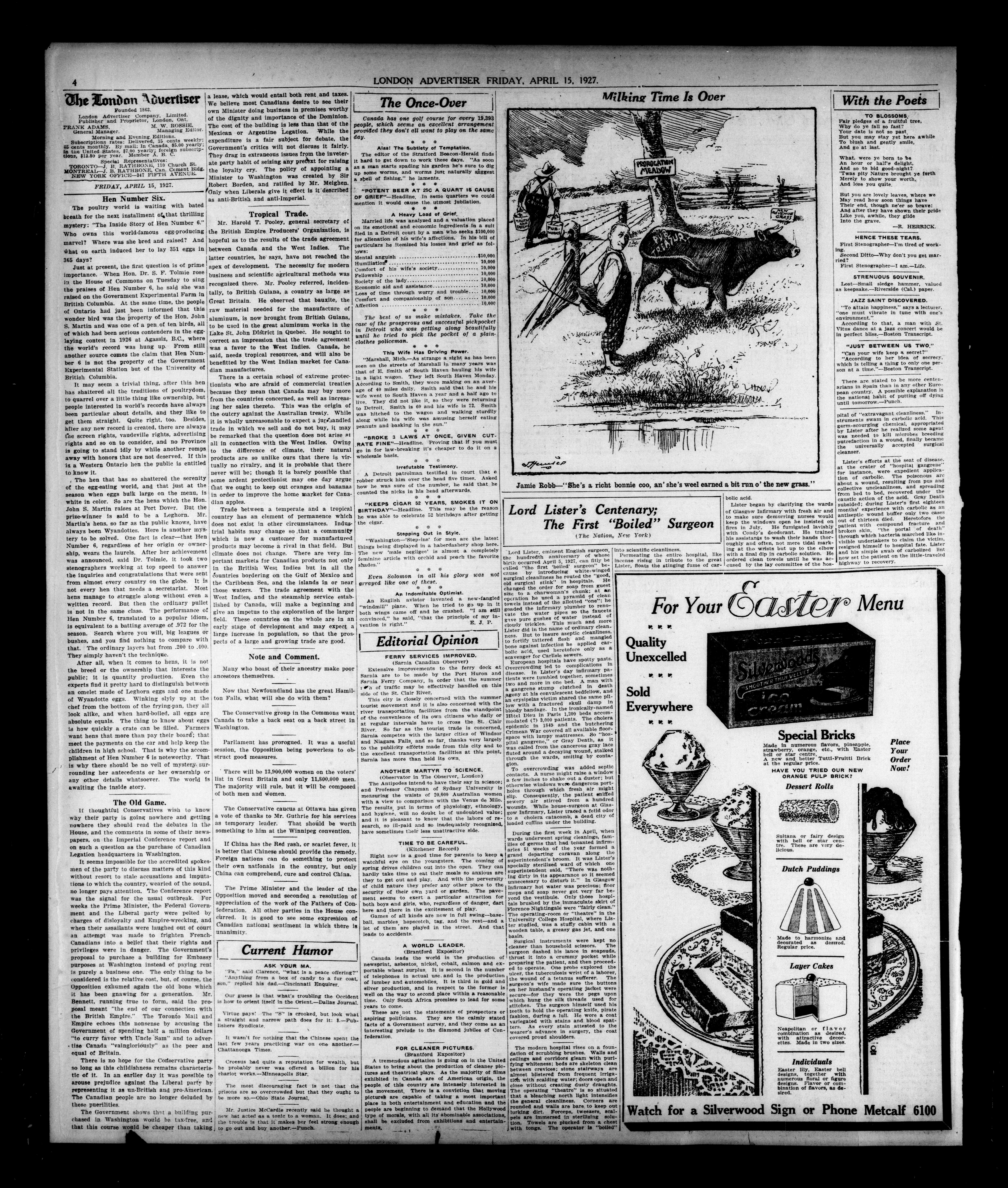 London, Ontario : London Advertiser Company, Limited, [1927]; 12 images, 0 with full-text search