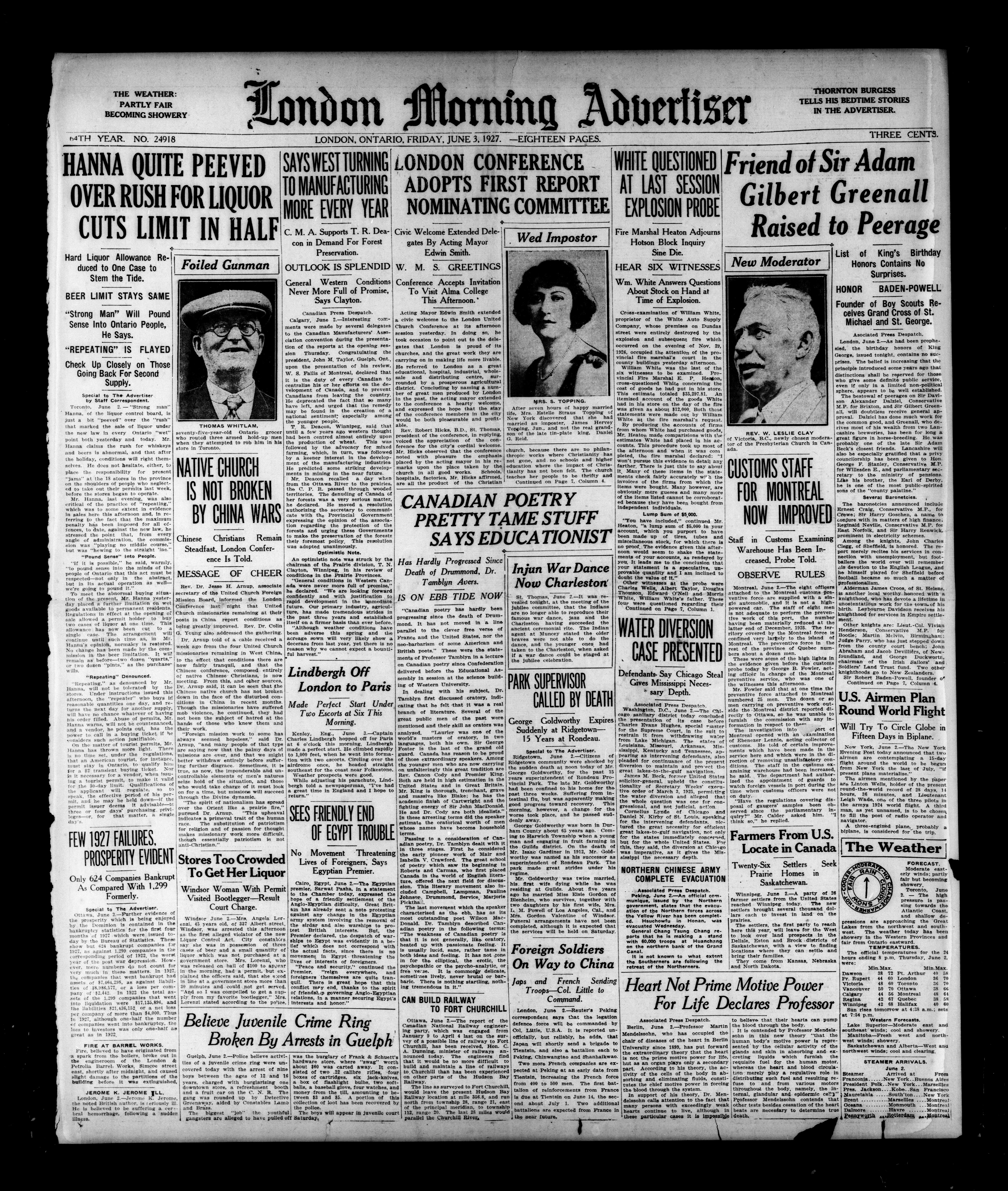 London morning advertiser : 64th Year, No. 24918 (June 3, 1927) - Published