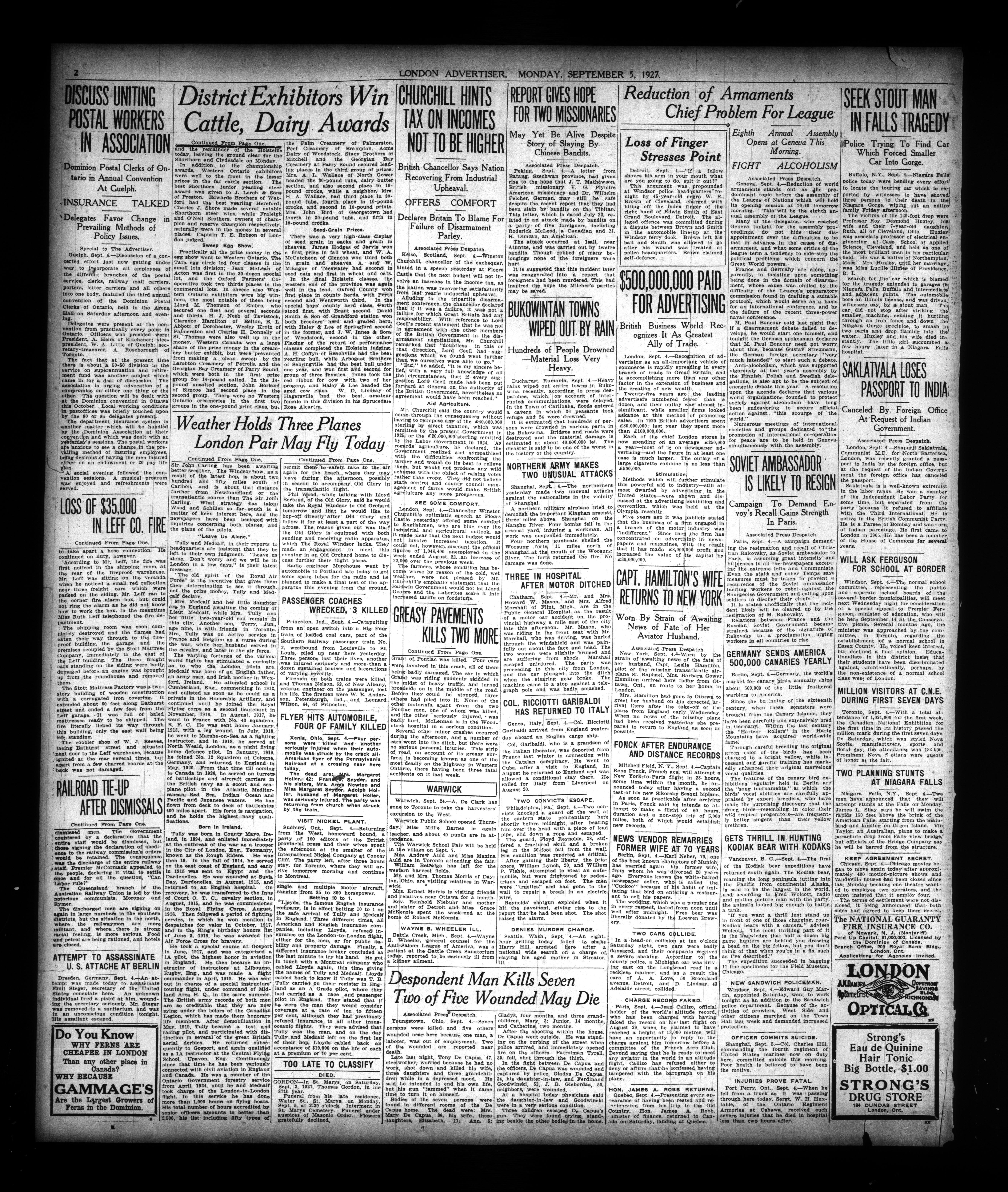 London, Ontario : London Advertiser Company, Limited, [1927]; 12 images, 0 avec recherche en texte intégral