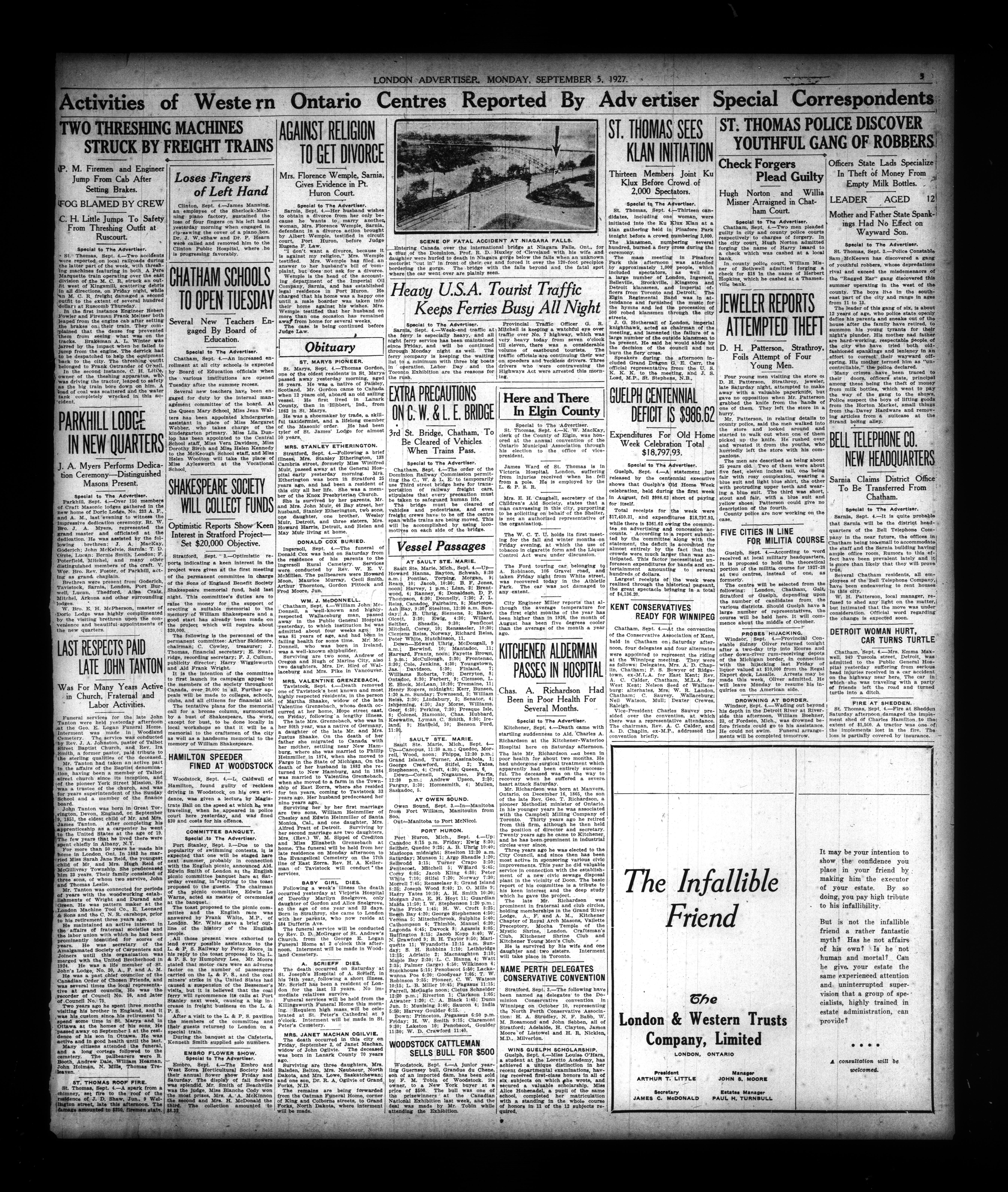 Aide London, Ontario : London Advertiser Company, Limited, [1927]; 12 images, 0 avec recherche en texte intégral