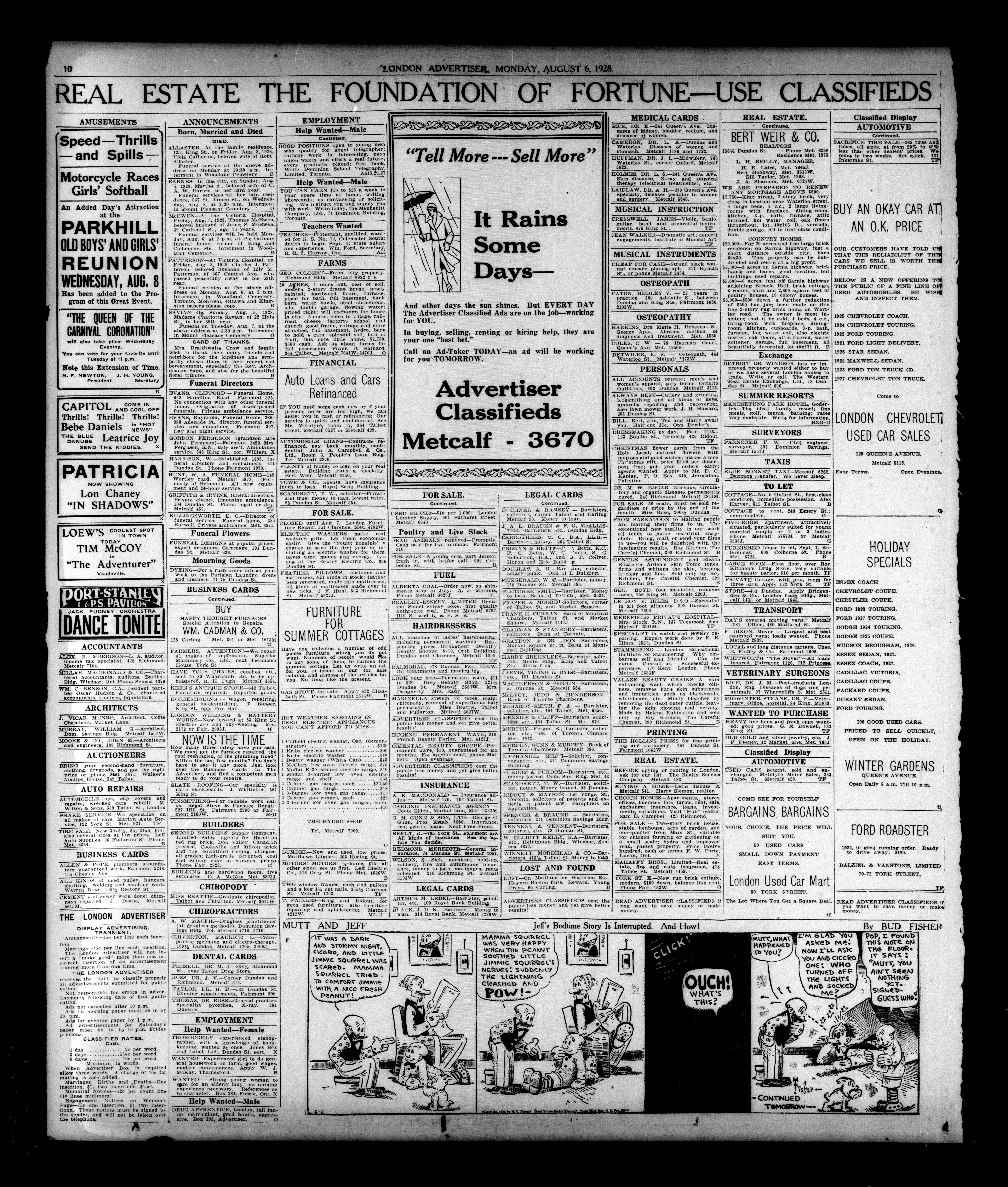 Aide London, Ontario : London Advertiser Company, Limited, [1928]; 12 images, 0 avec recherche en texte intégral