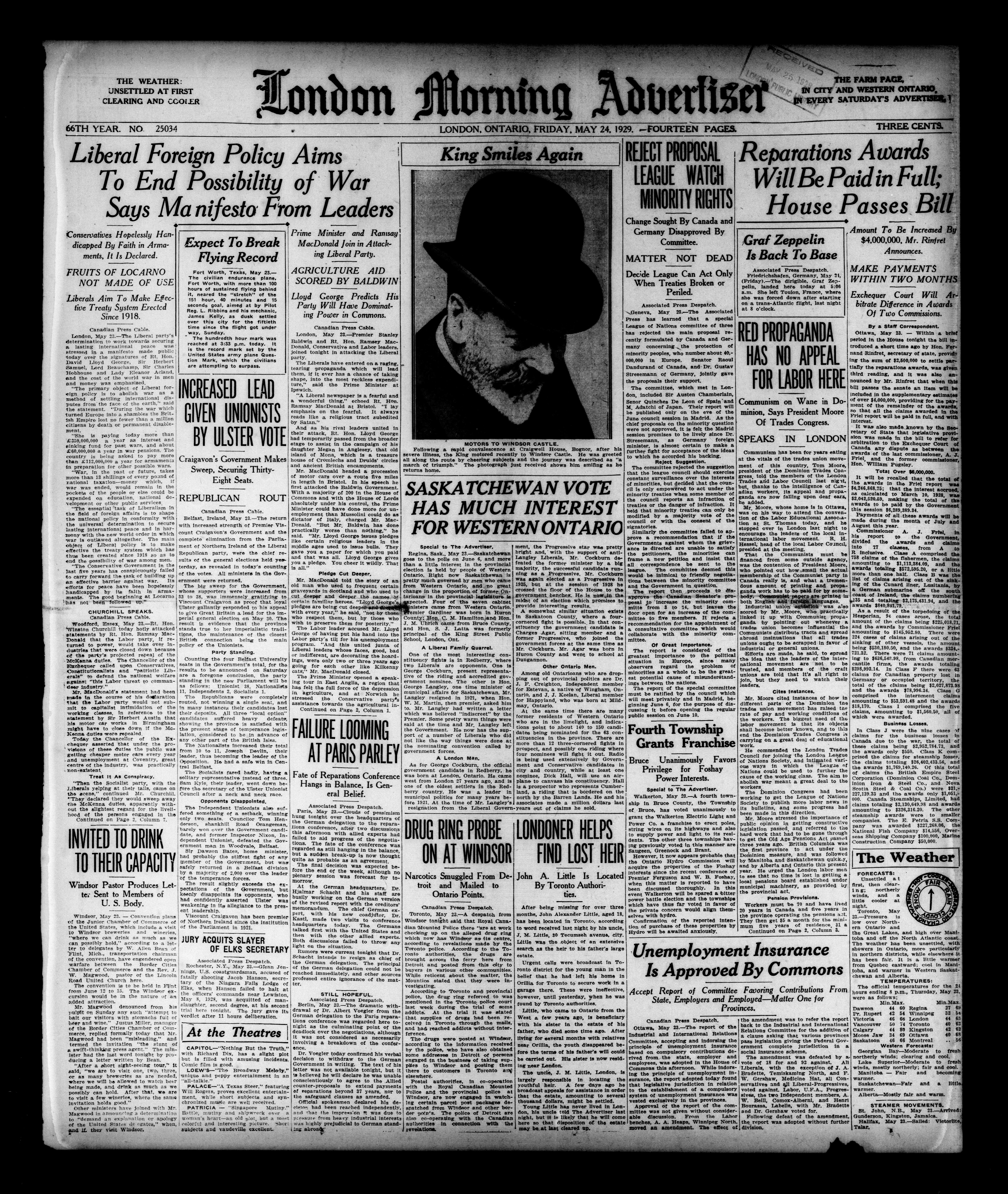 London morning advertiser : 66th Year, No. 25034 (May 24, 1929) - Published