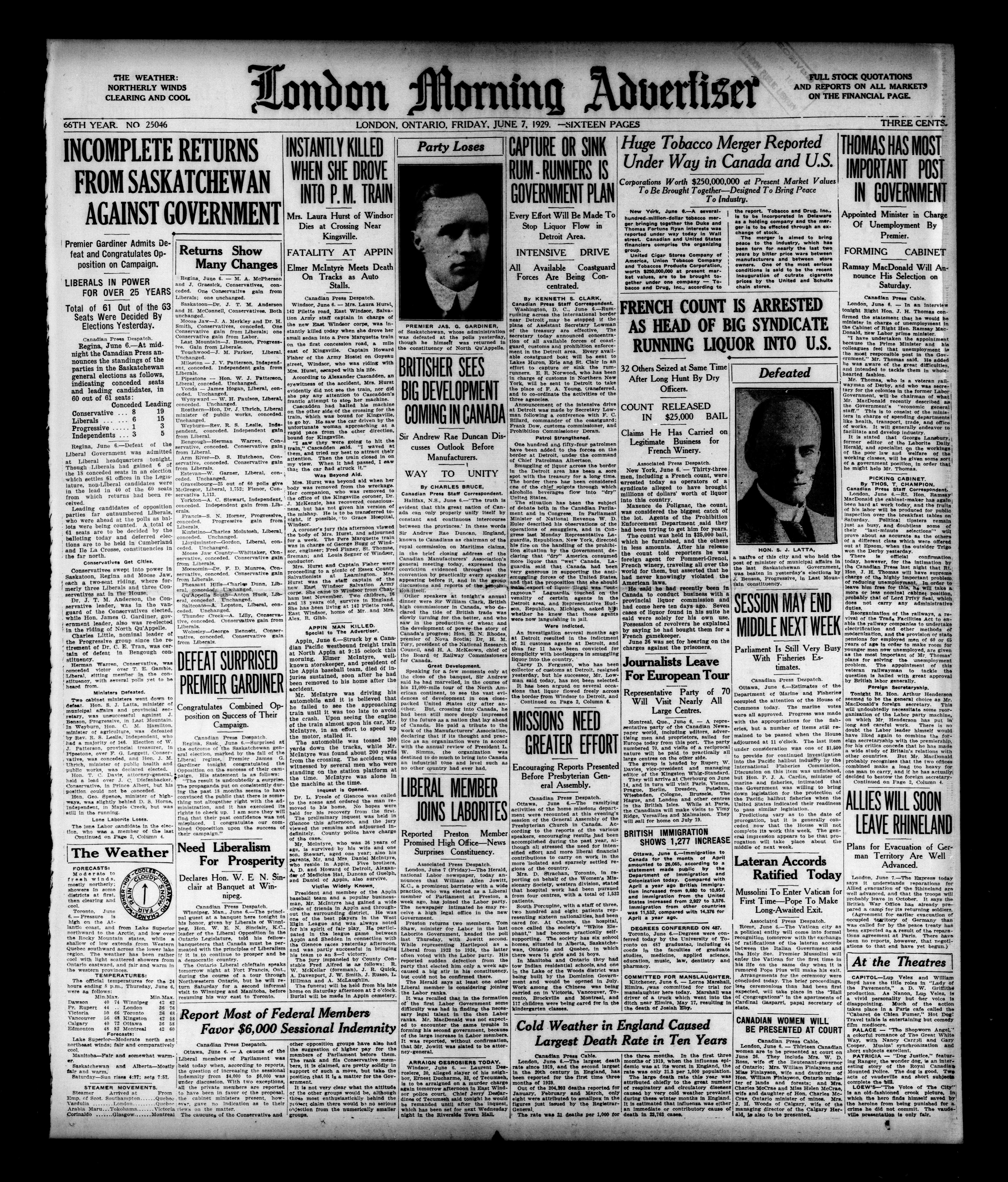 London morning advertiser : 66th Year, No. 25046 (June 7, 1929) - Published