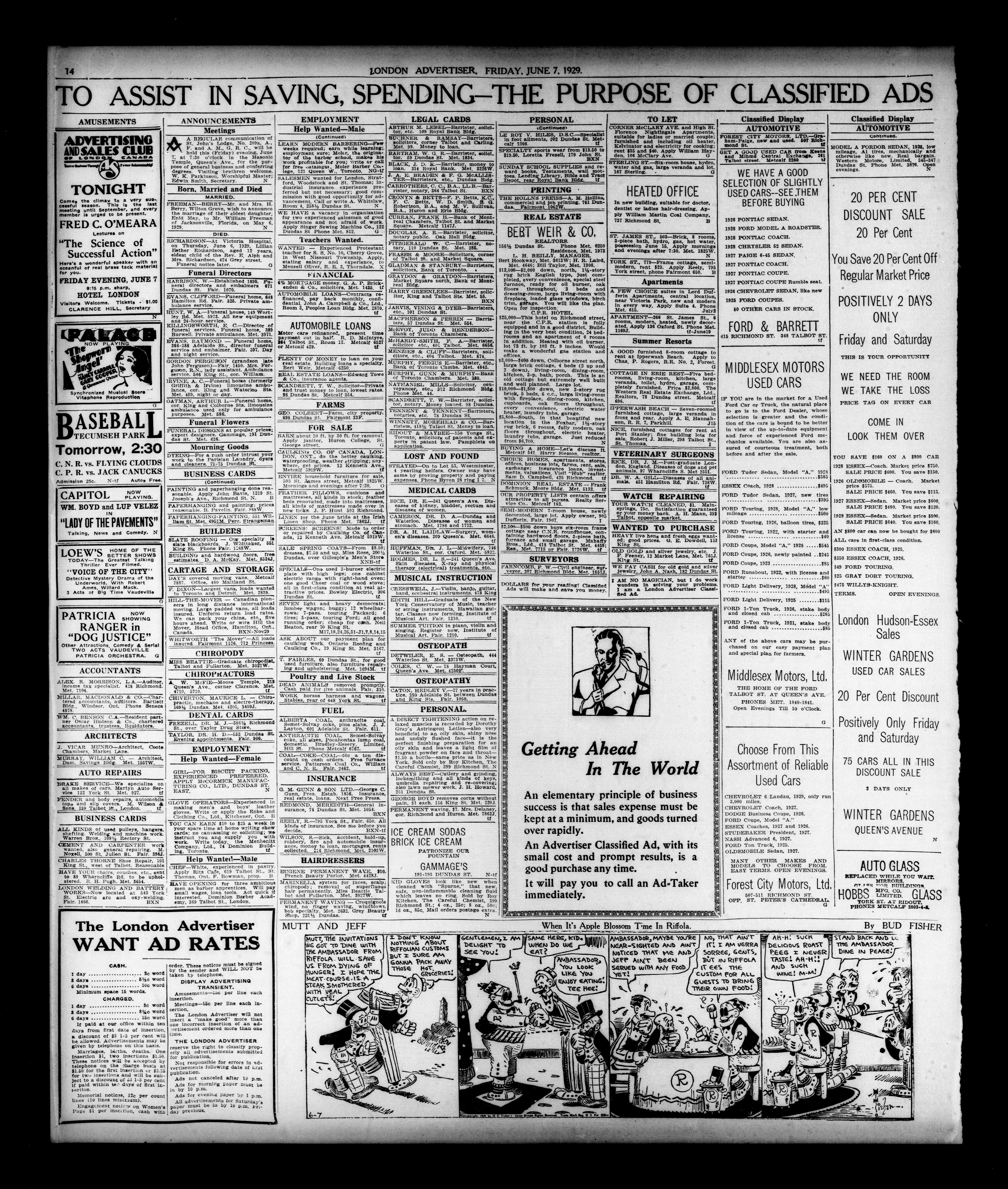 London, Ontario : London Advertiser Company, Limited, [1929]; 16 images, 0 avec recherche en texte intégral