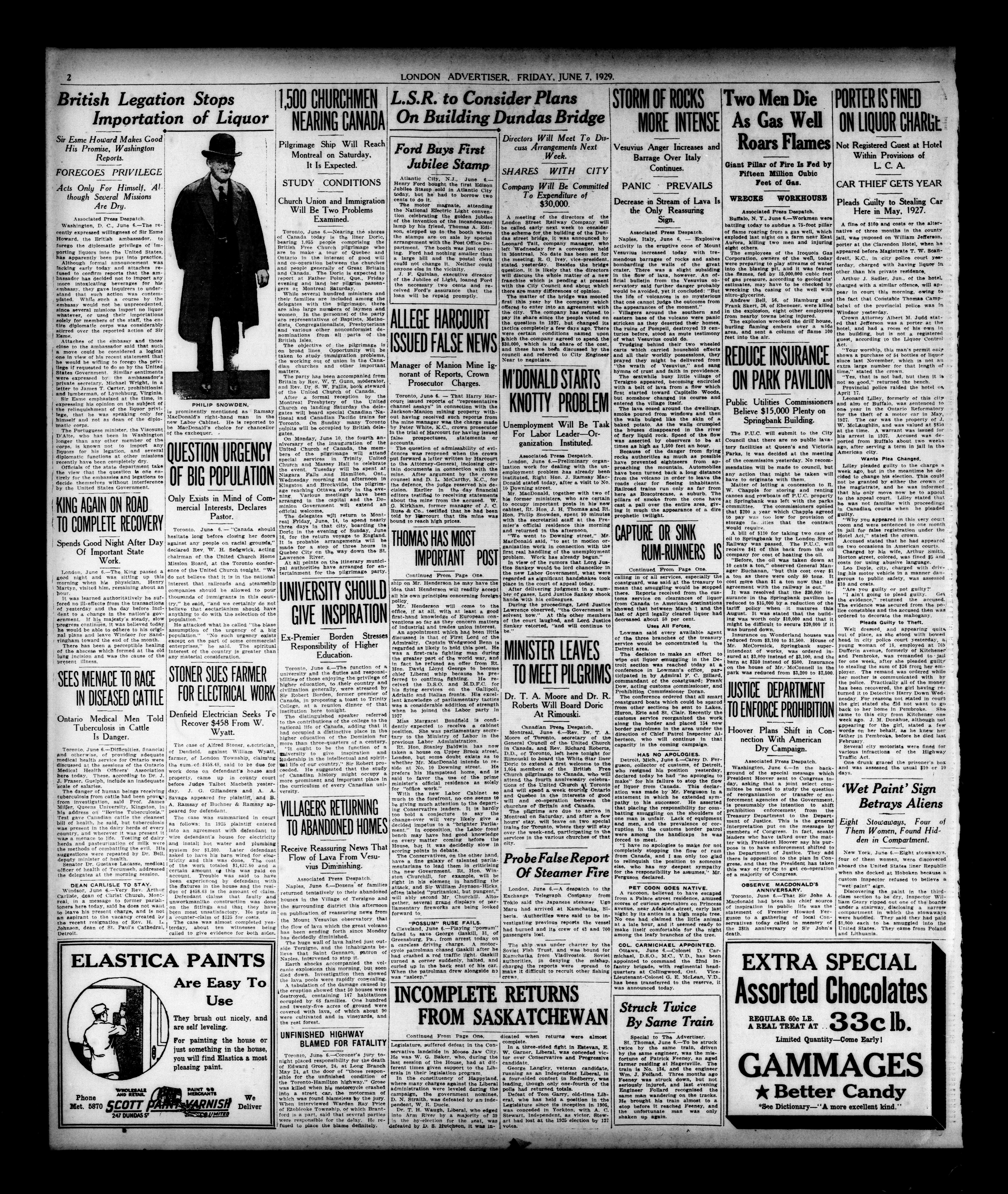 London, Ontario : London Advertiser Company, Limited, [1929]; 16 images, 0 avec recherche en texte intégral