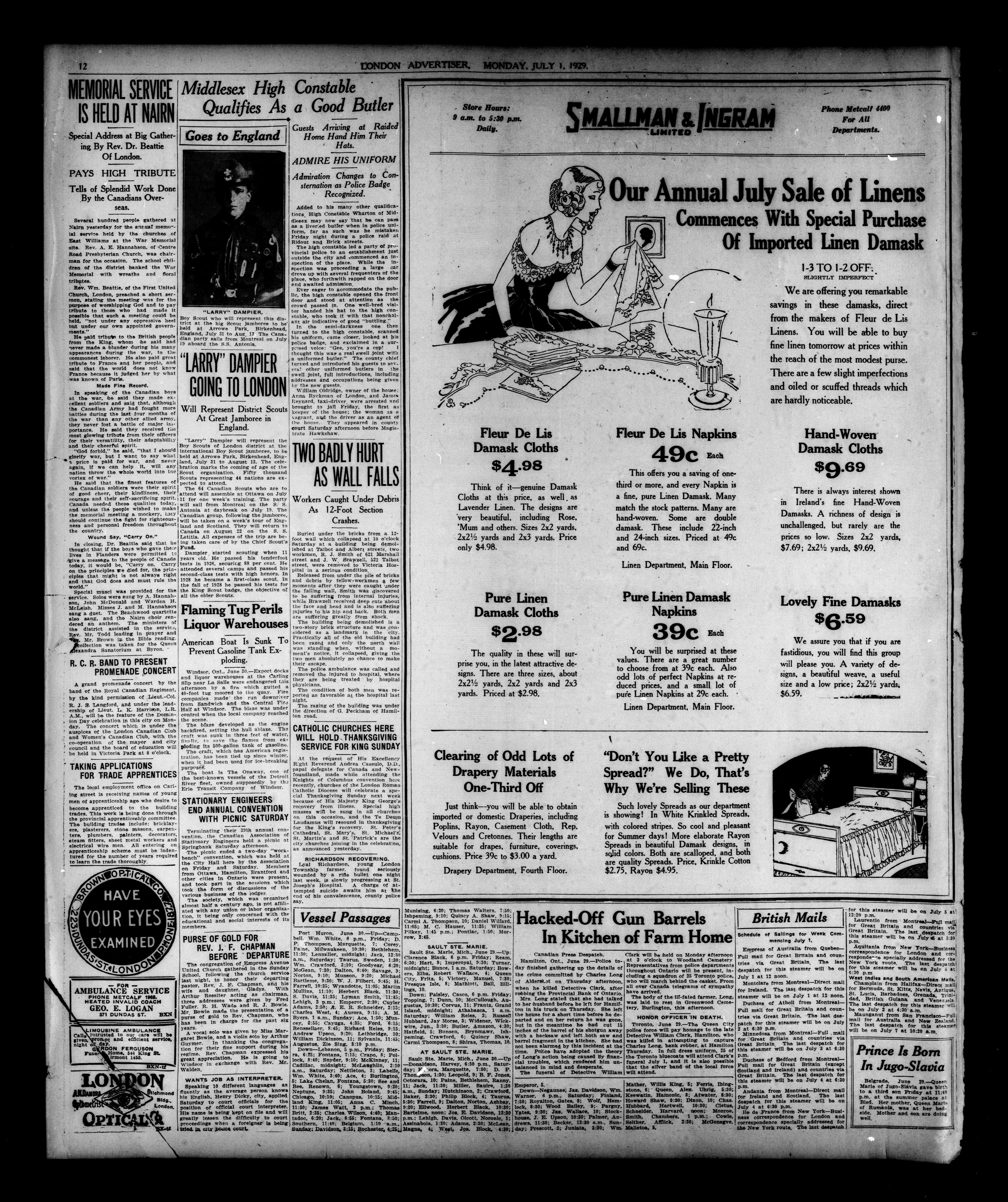 Aide London, Ontario : London Advertiser Company, Limited, [1929]; 12 images, 0 avec recherche en texte intégral