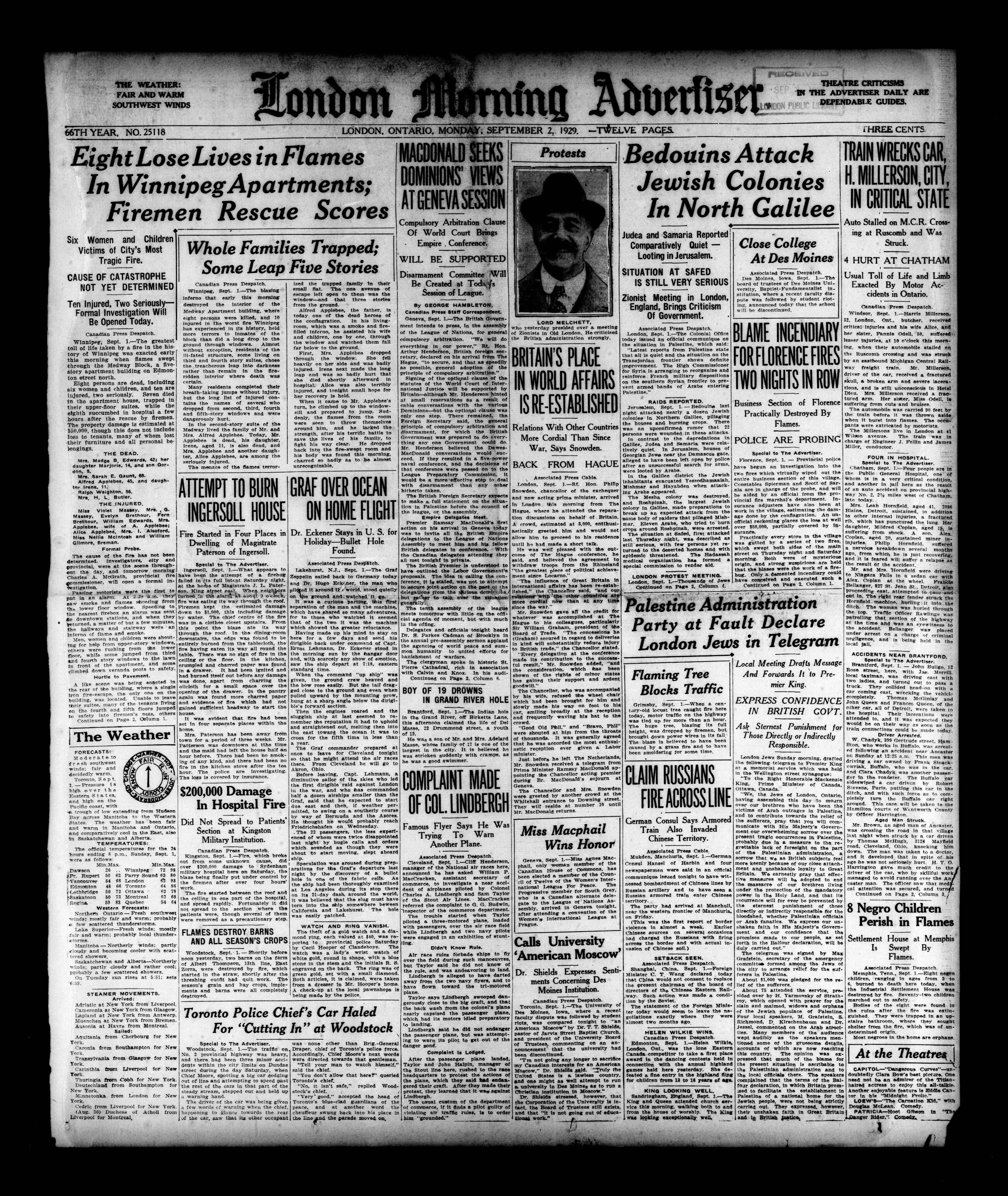 London morning advertiser : 66th Year, No. 25118 (September 2, 1929) - Published