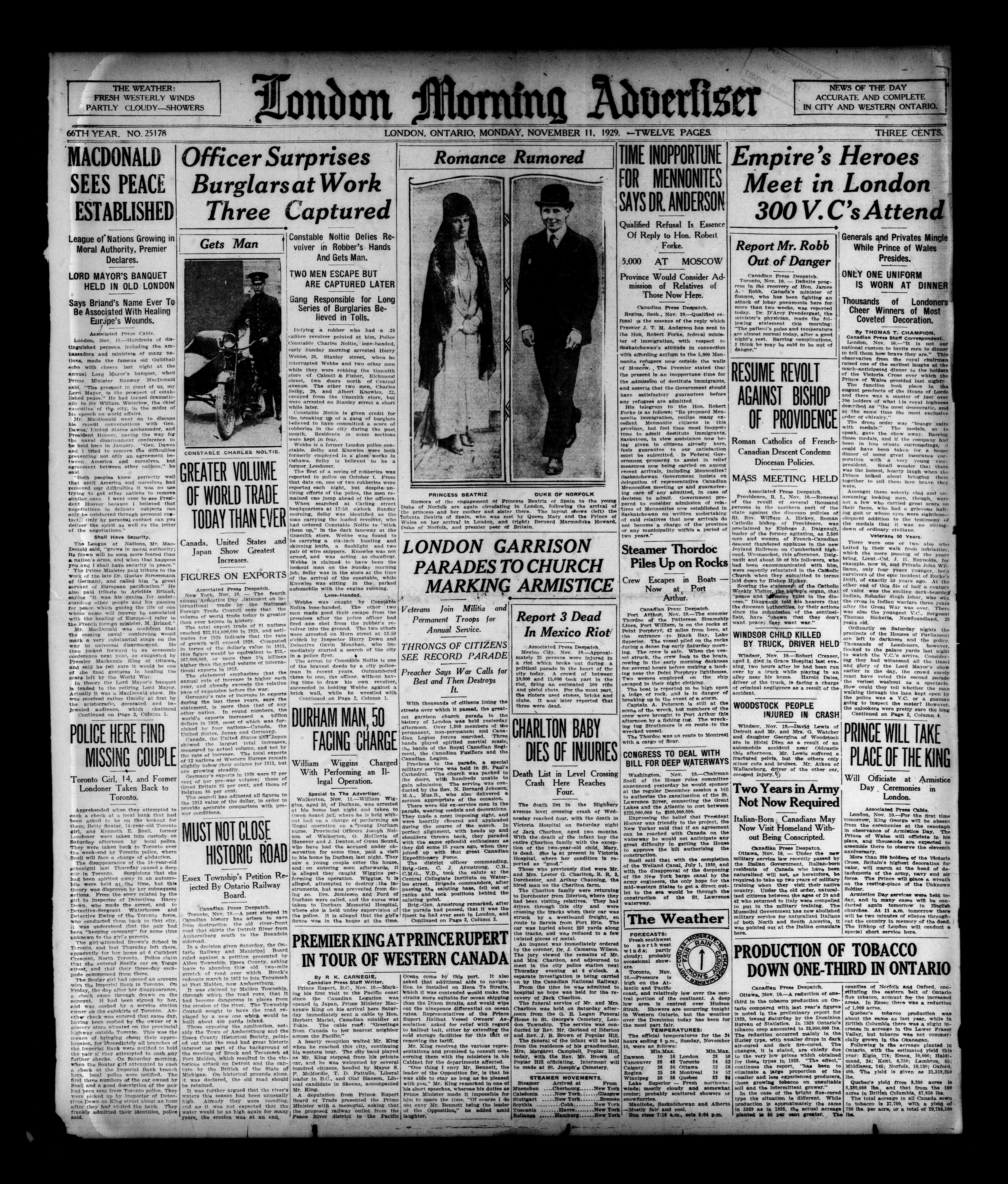 London Morning Advertiser. : London morning advertiser : 66th Year, No. 25178 (November 11, 1929)