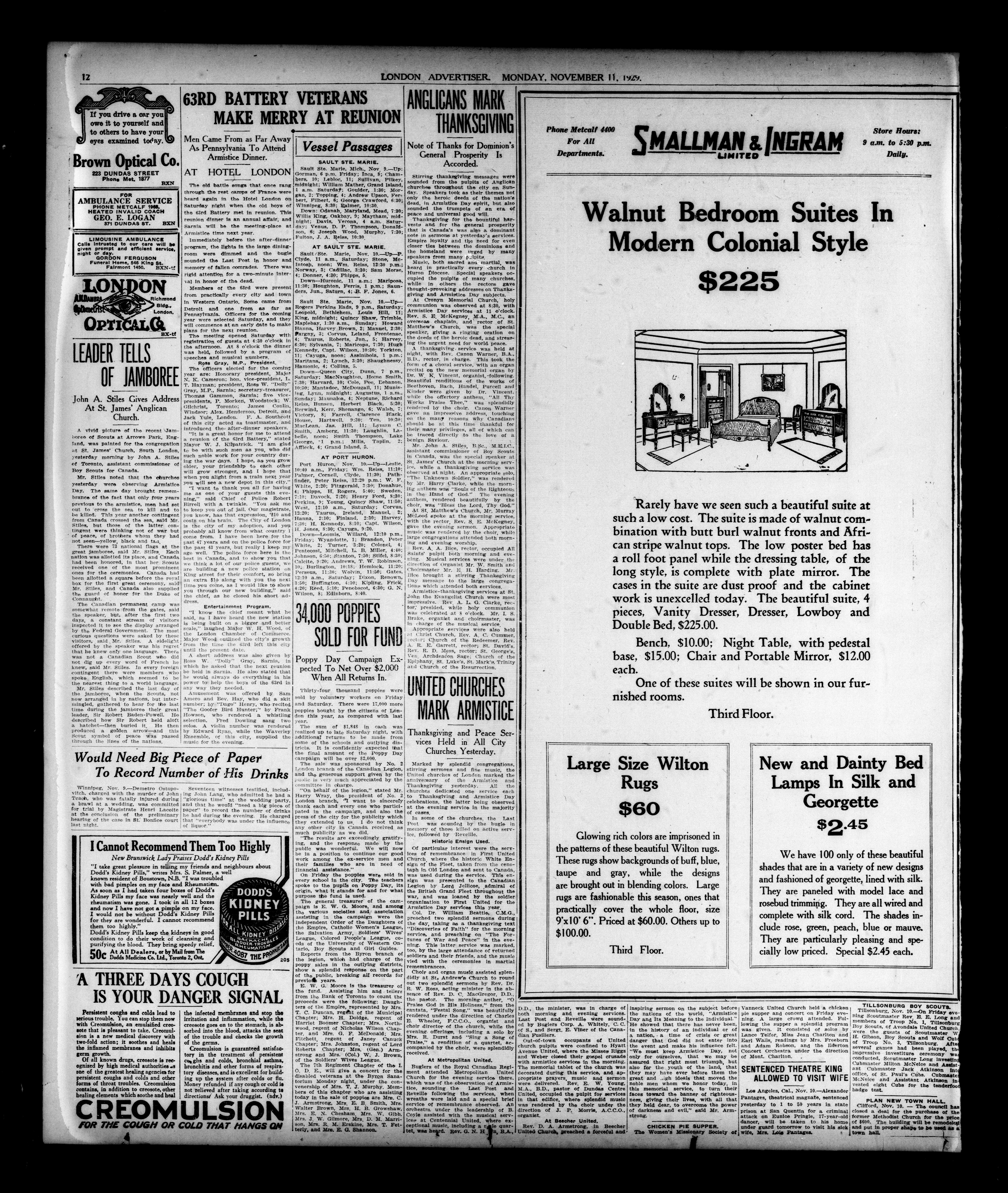 London, Ontario : London Advertiser Company, Limited, [1929]; 12 images, 0 avec recherche en texte intégral