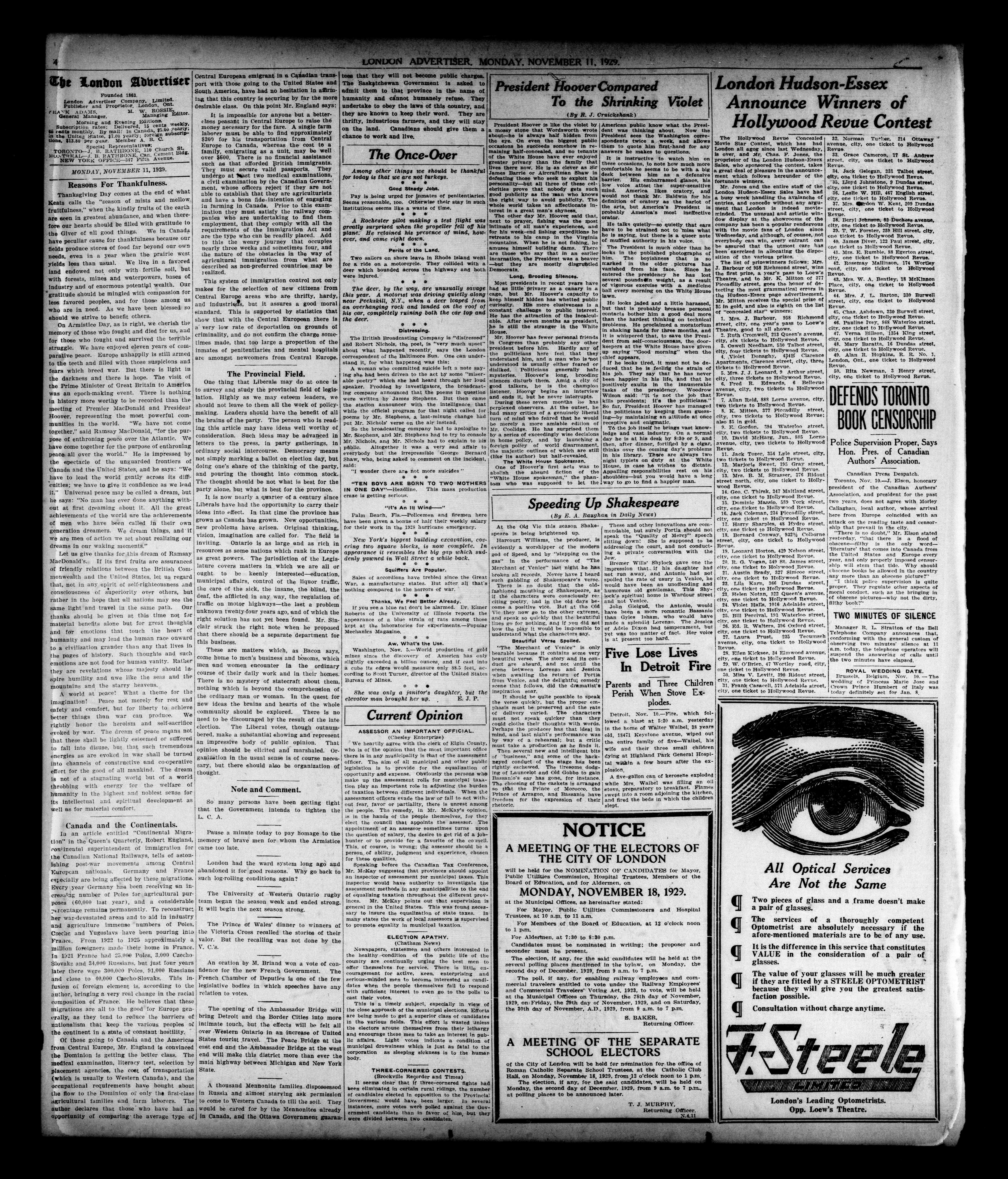 London, Ontario : London Advertiser Company, Limited, [1929]; 12 images, 0 avec recherche en texte intégral