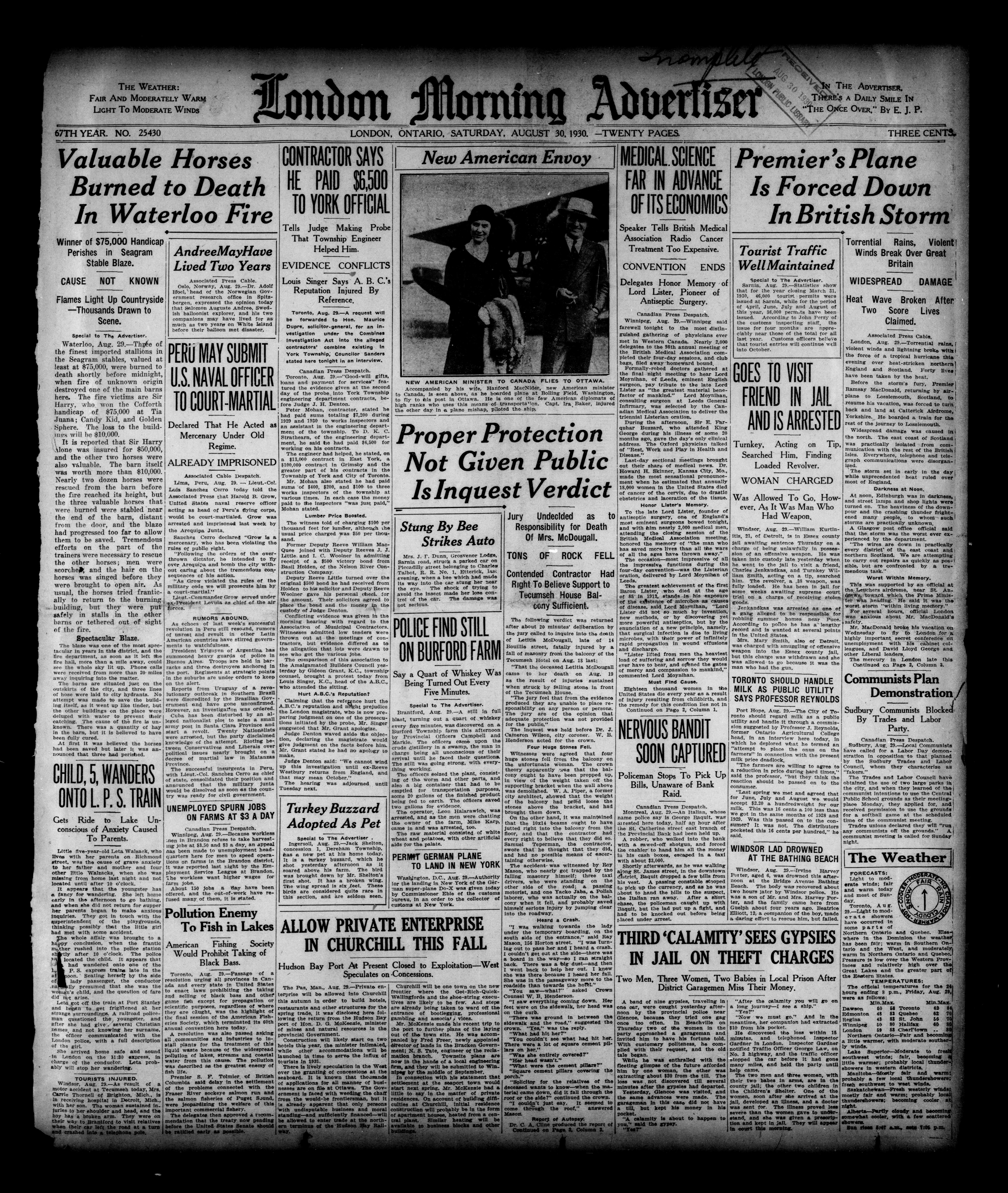 London morning advertiser : 67th Year, No. 25430 (August 30, 1930) - Adresse bibliographique