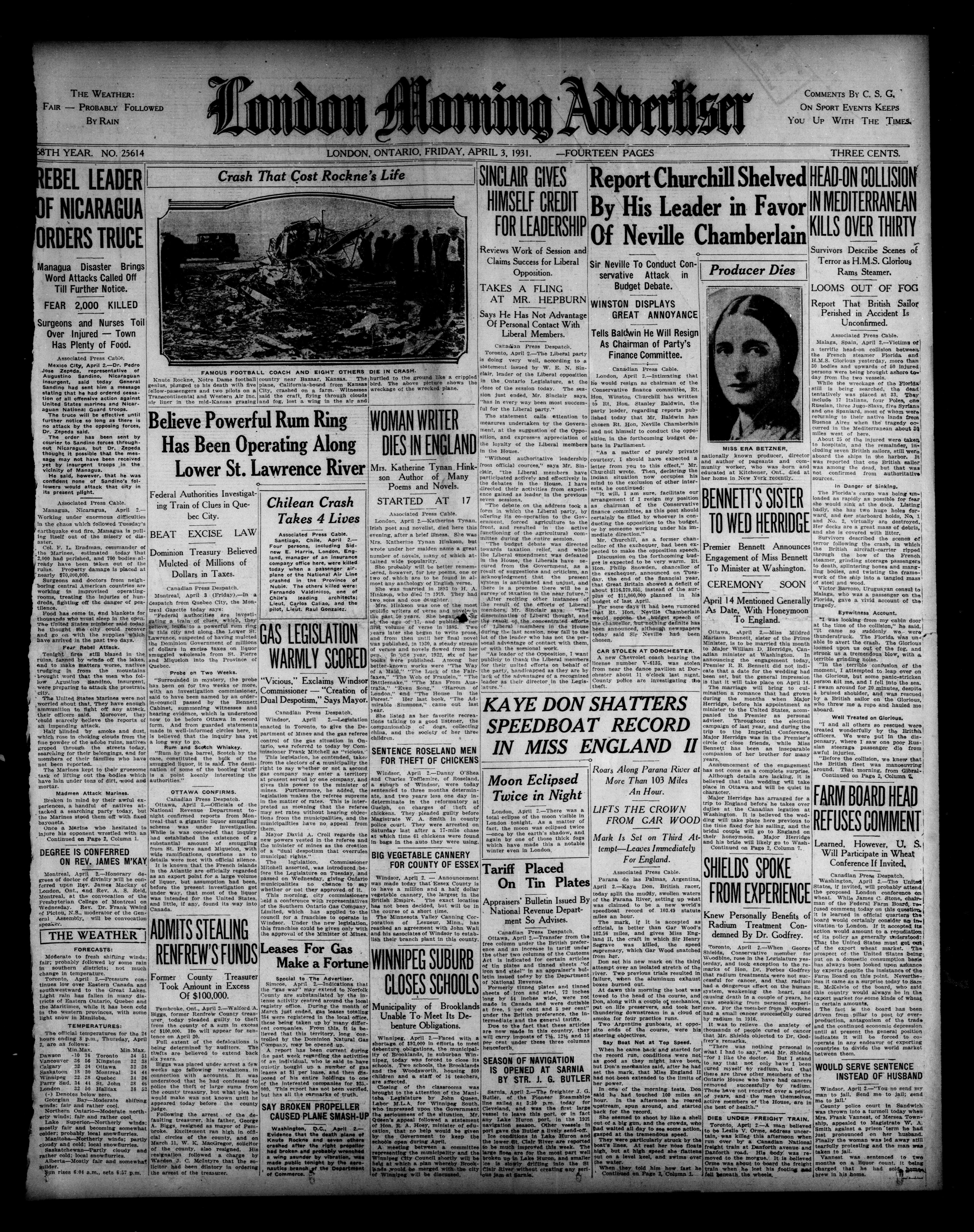 London, Ontario : London Advertiser Company, Limited, [1931]; 14 images, 0 avec recherche en texte intégral