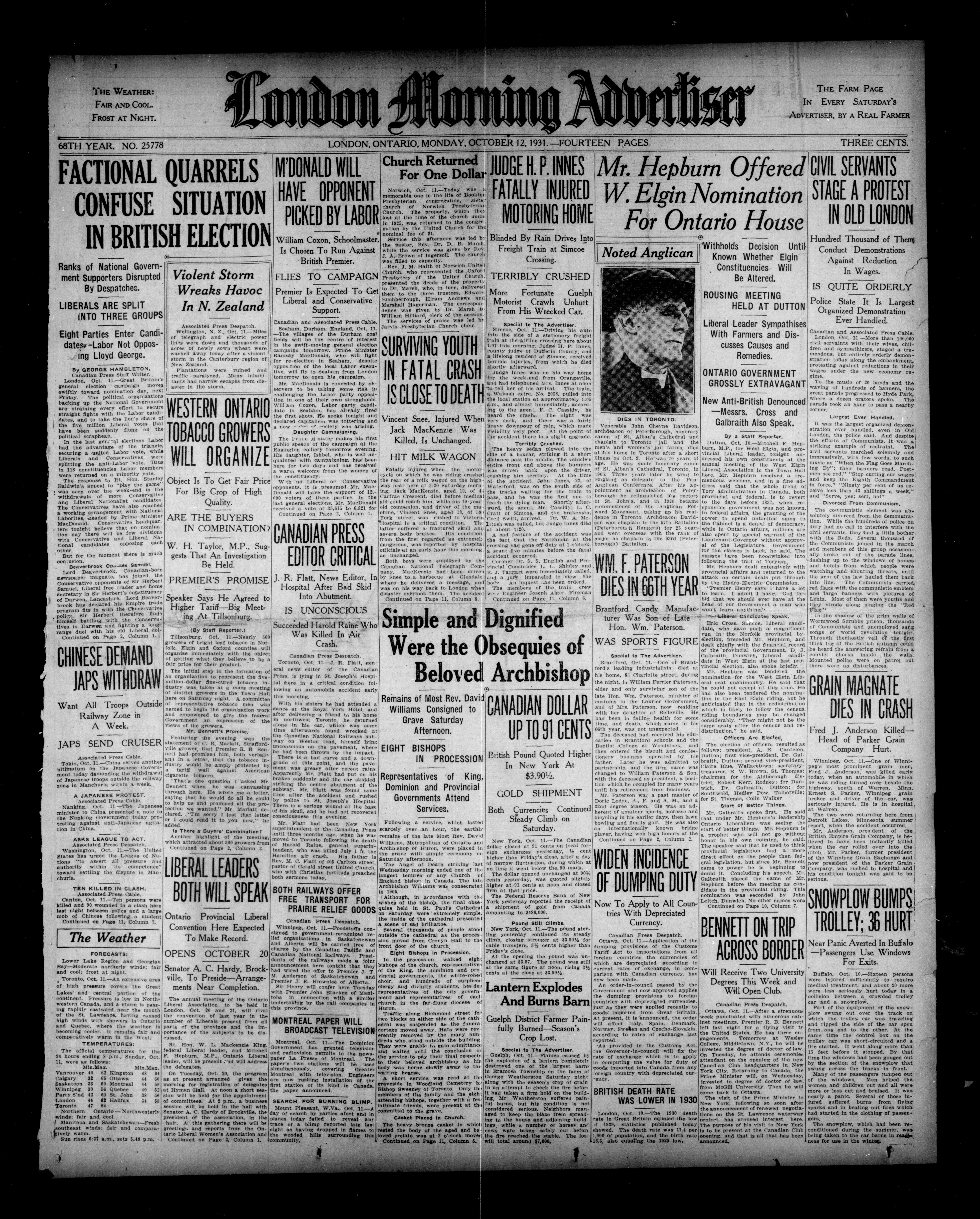 London, Ontario : London Advertiser Company, Limited, [1931]; 14 images, 0 with full-text search