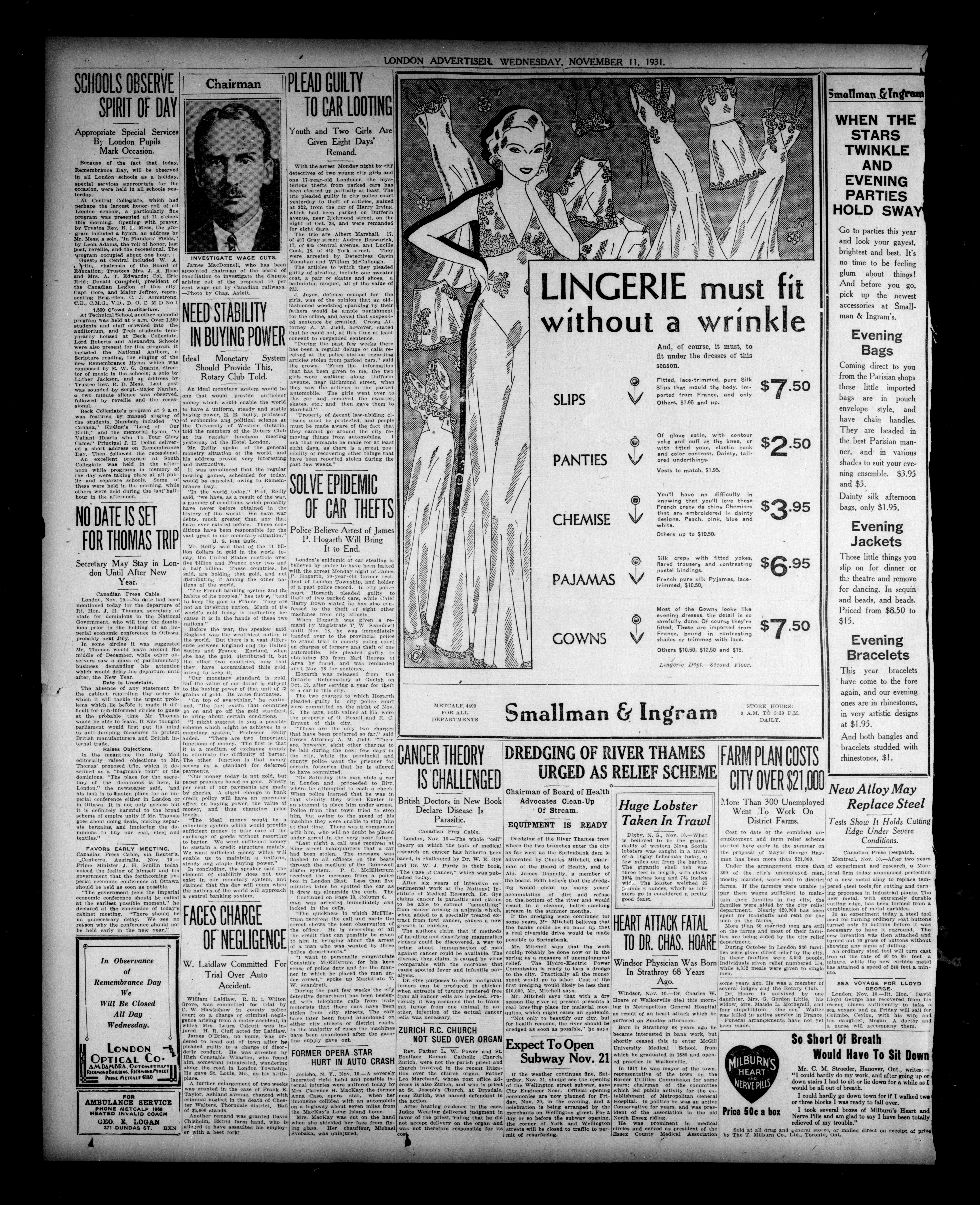 London, Ontario : London Advertiser Company, Limited, [1931]; 16 images, 0 avec recherche en texte intégral