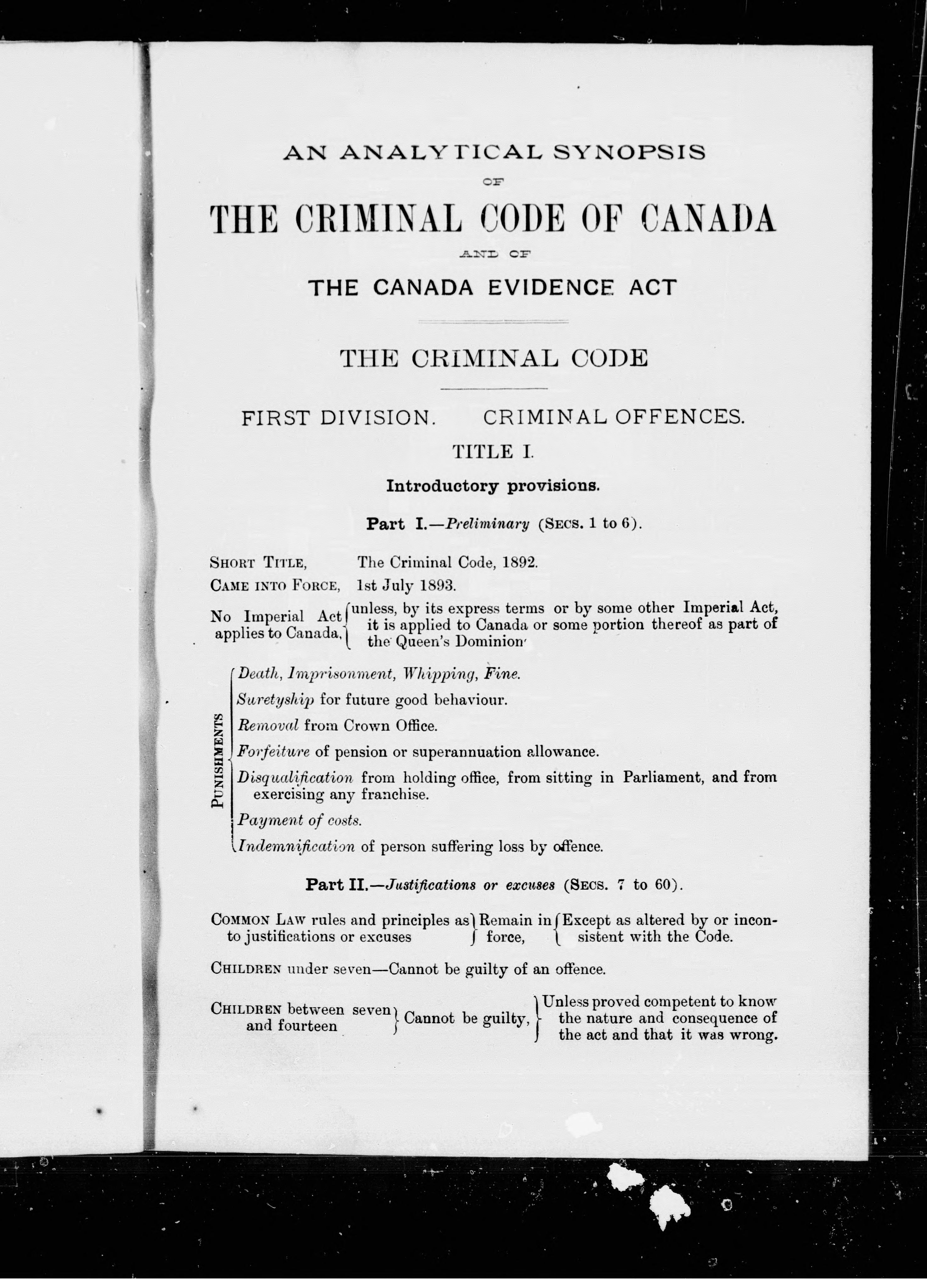 - An analytical synopsis of the Criminal Code and of the Canada Evidence Act