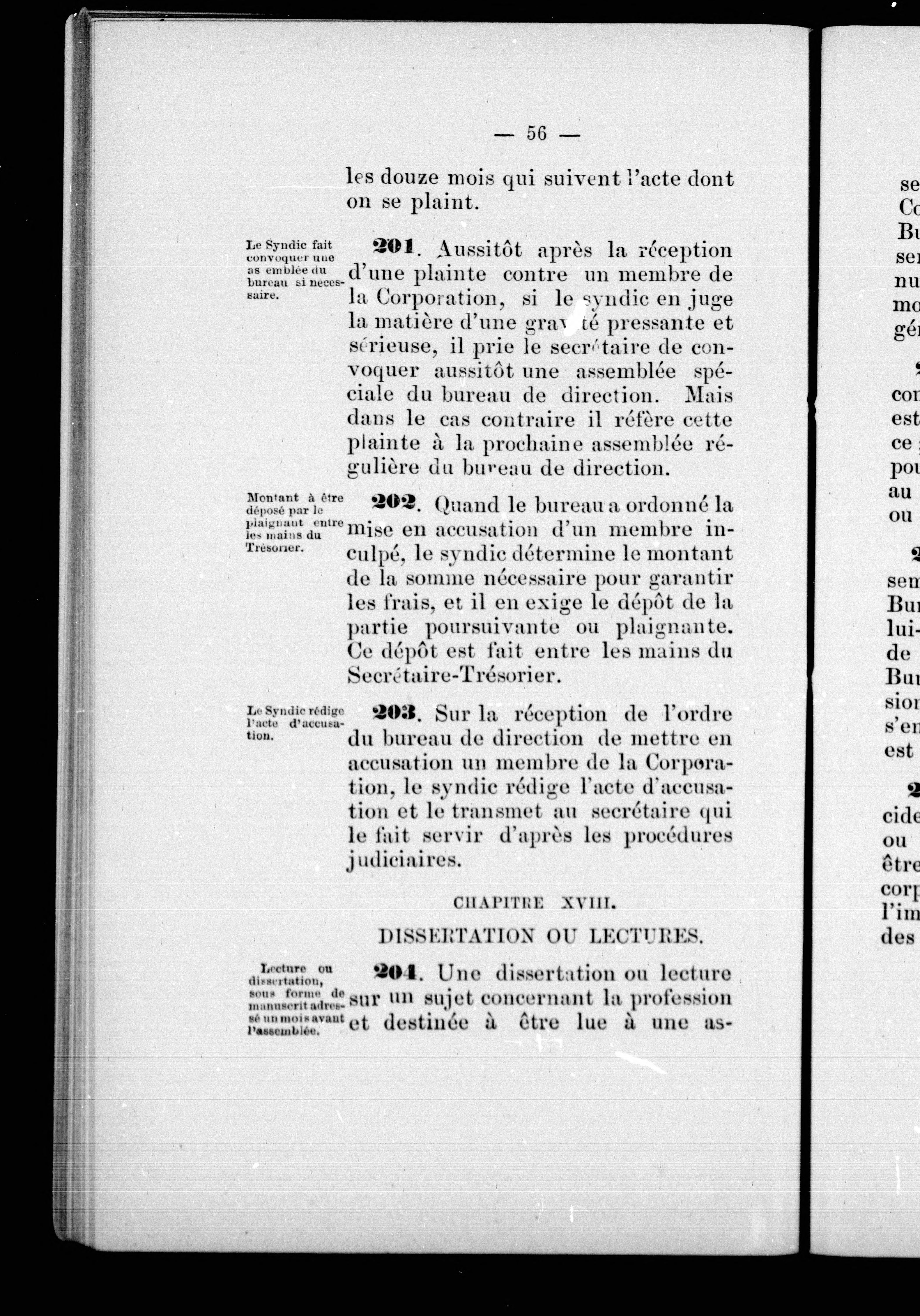 En tête du titre: Chapitre cinquième du titre X des Statuts refondus.