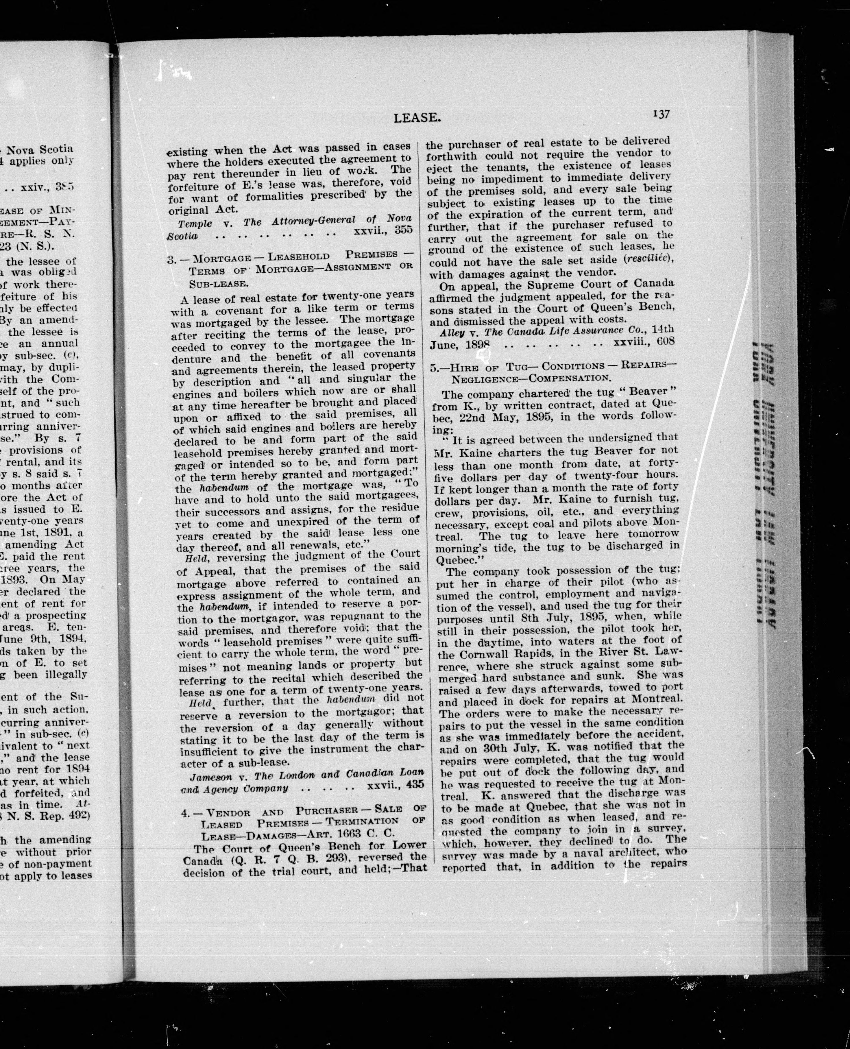A Digest of cases determined by the Supreme Court of Canada : on appeal from dominion, provincial and territorial courts of Canada during the years 1893-1898 : comprising all cases reported in volumes 22 to 28 both inclusive, and part of volume 29 of the official reports of the court and a number of unreported cases decided during the same period