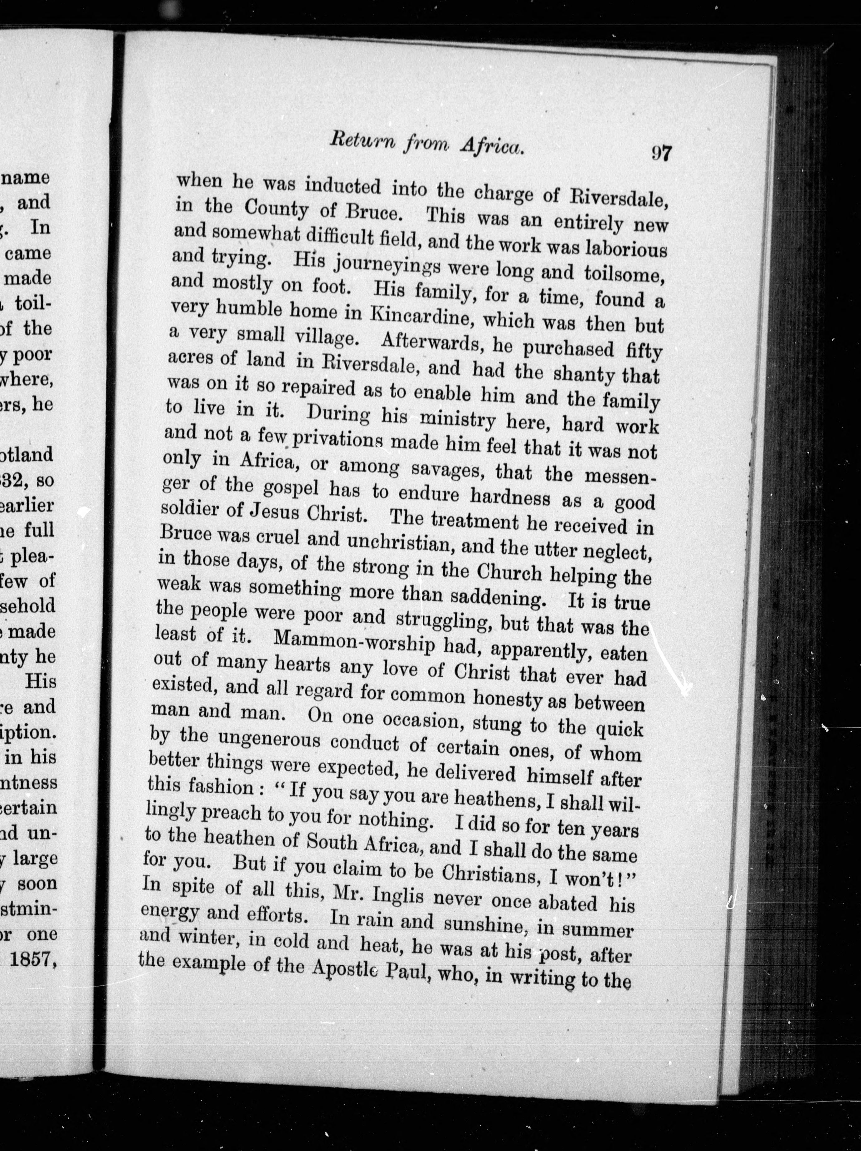 Memoirs and remains of the Reverend Walter Inglis, African missionary and Canadian pastor /