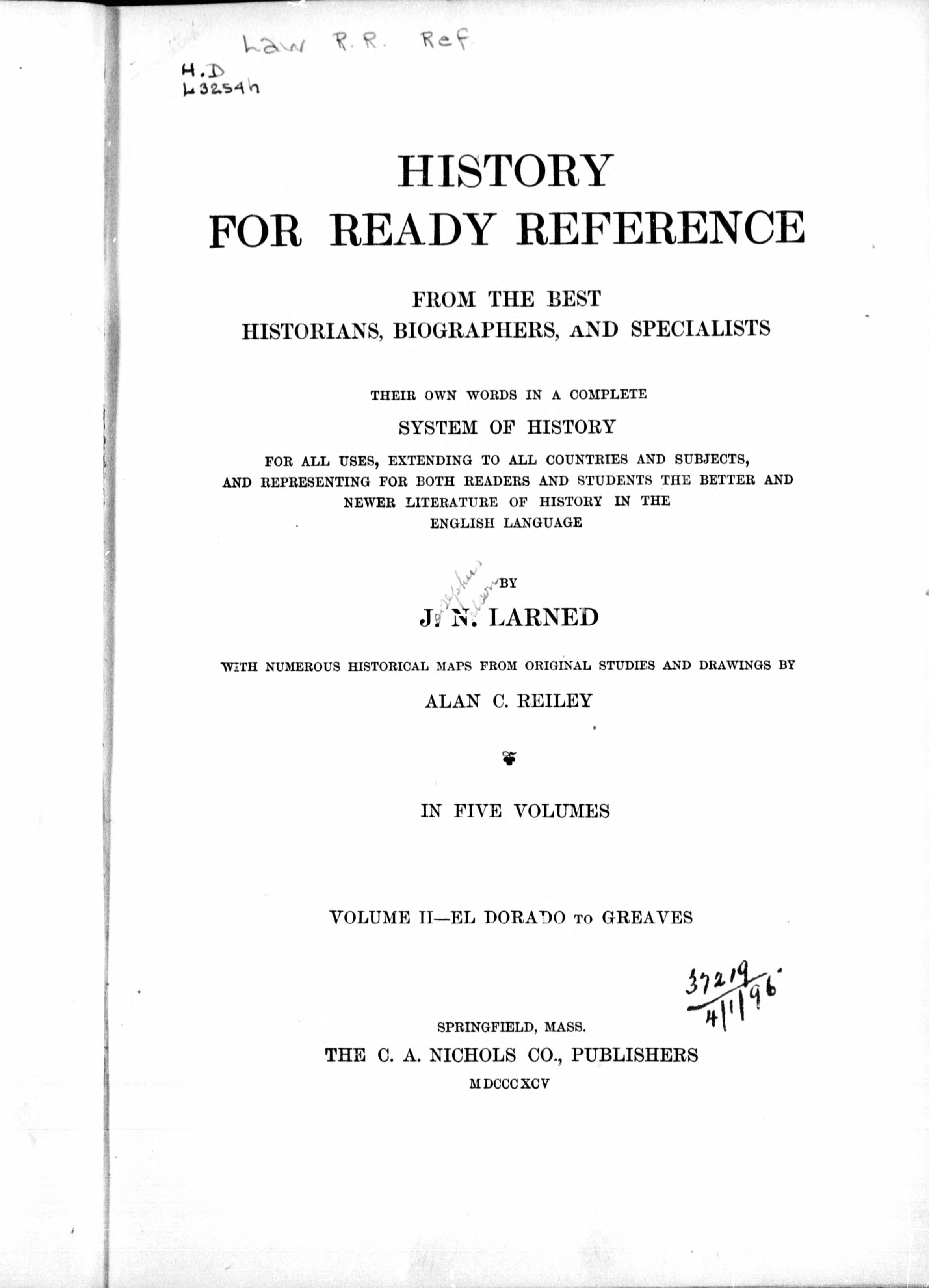 History for ready reference : from the best historians, biographers, and specialists : their own words in a complete system of history for all uses, extending to all countries and subjects, and representing for both readers and students the better and newer literature of history in the English language