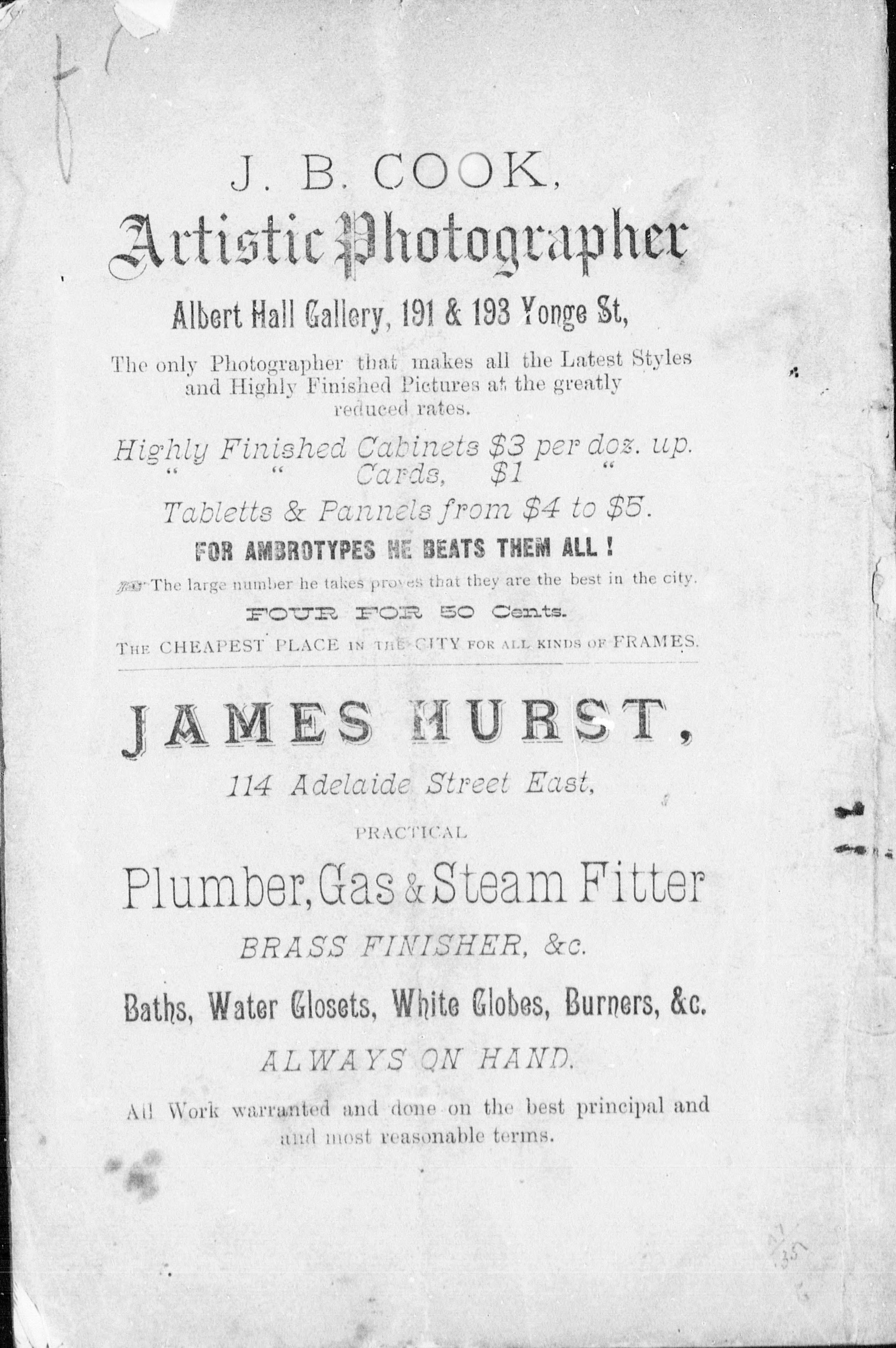 - Toronto : [s.n.], 1881 (Toronto : Johnston Bros.)