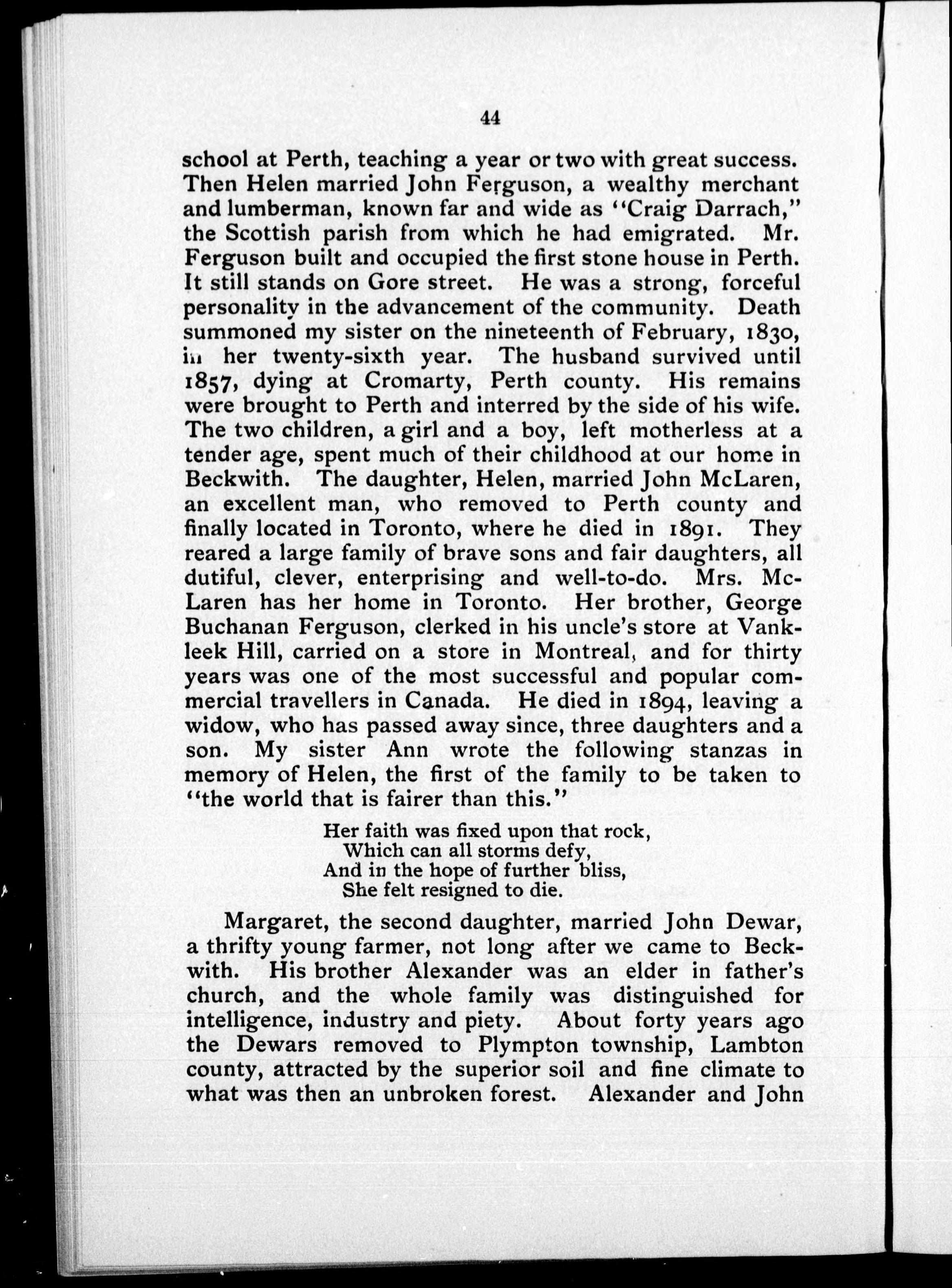 The pioneer pastor : some reminiscences of the life and labors of the Rev. Geo. Buchanan, M.D., first Presbyterian minister of Beckwith, Lanark County, Upper Canada