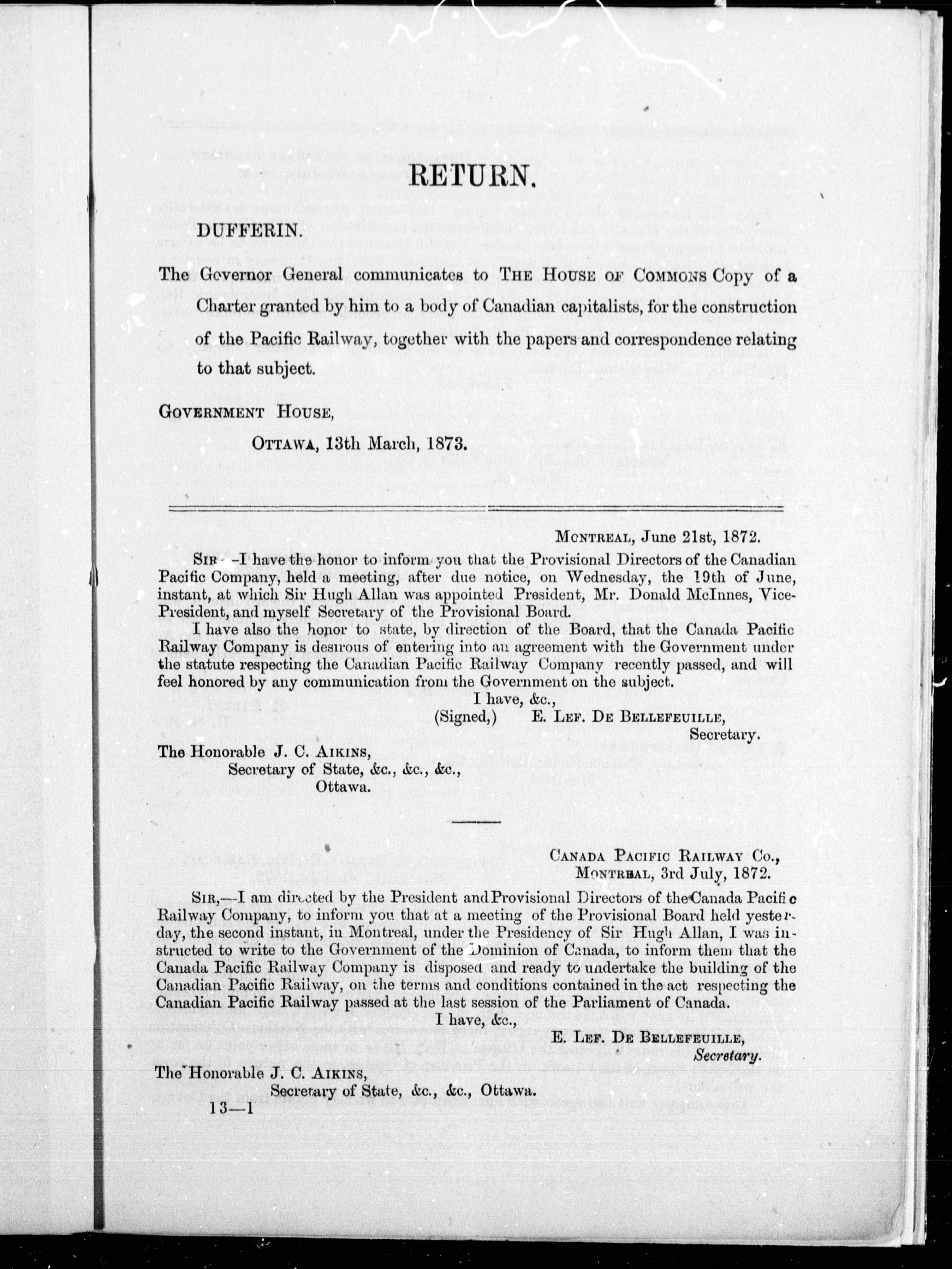 Ottawa : Printed by order of Parliament by I.B. Taylor, 1873.; 58 images, 55 with full-text search
