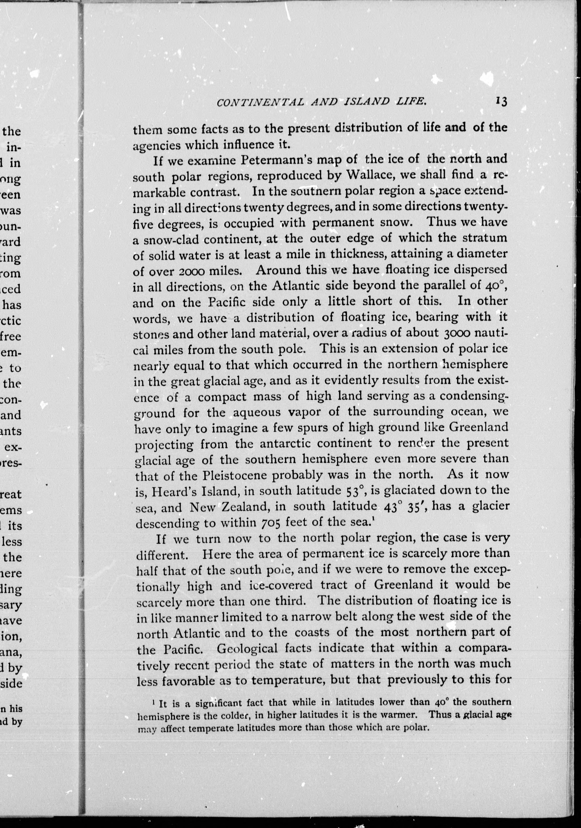 Continental and island life, a review of Wallace : with reference to the bearing of geological facts and theories of evolution on the distribution of life