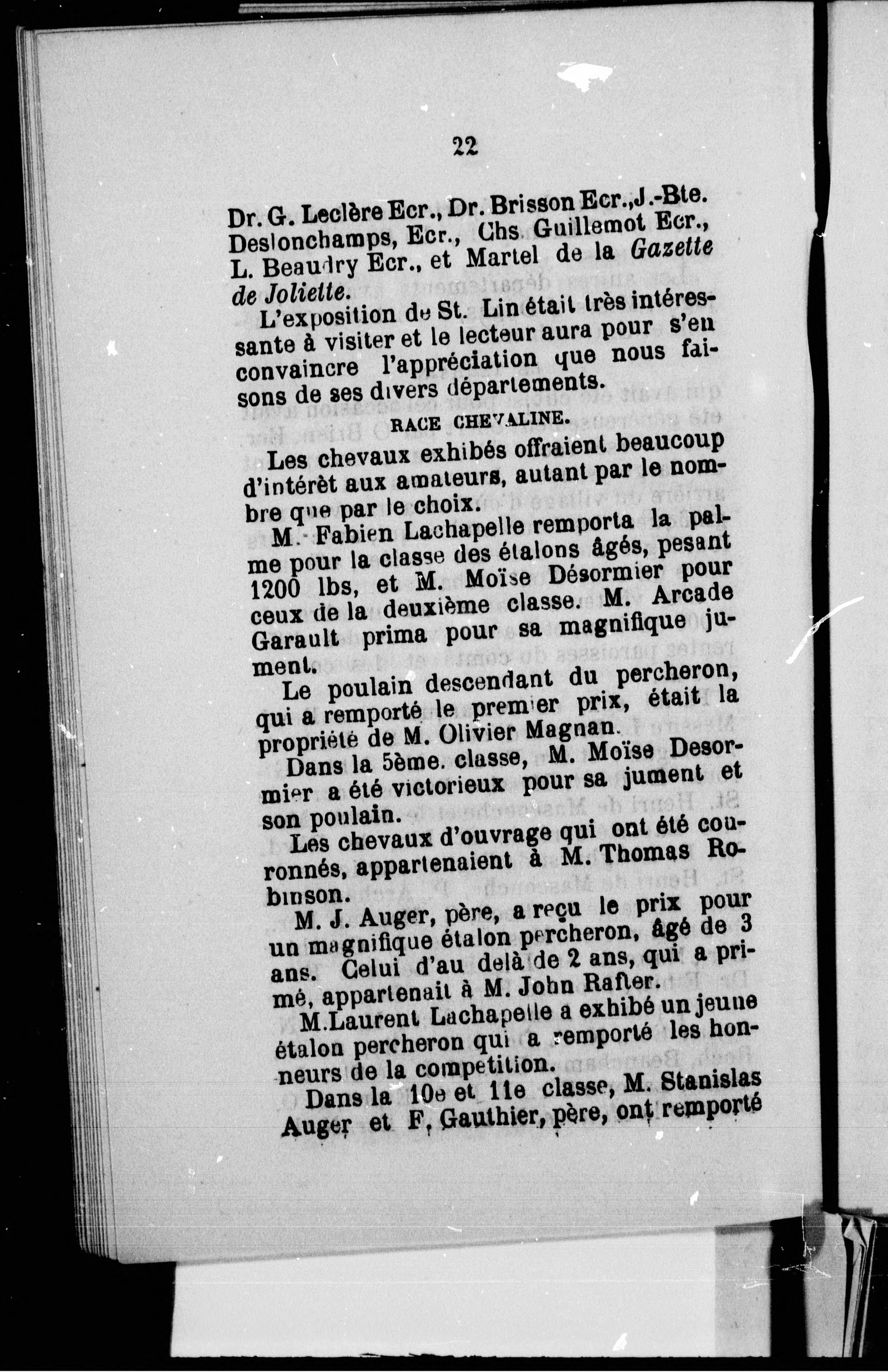 Dédicace: Aux citoyens de St. Lin. J.O. Dion, reconnaissant.