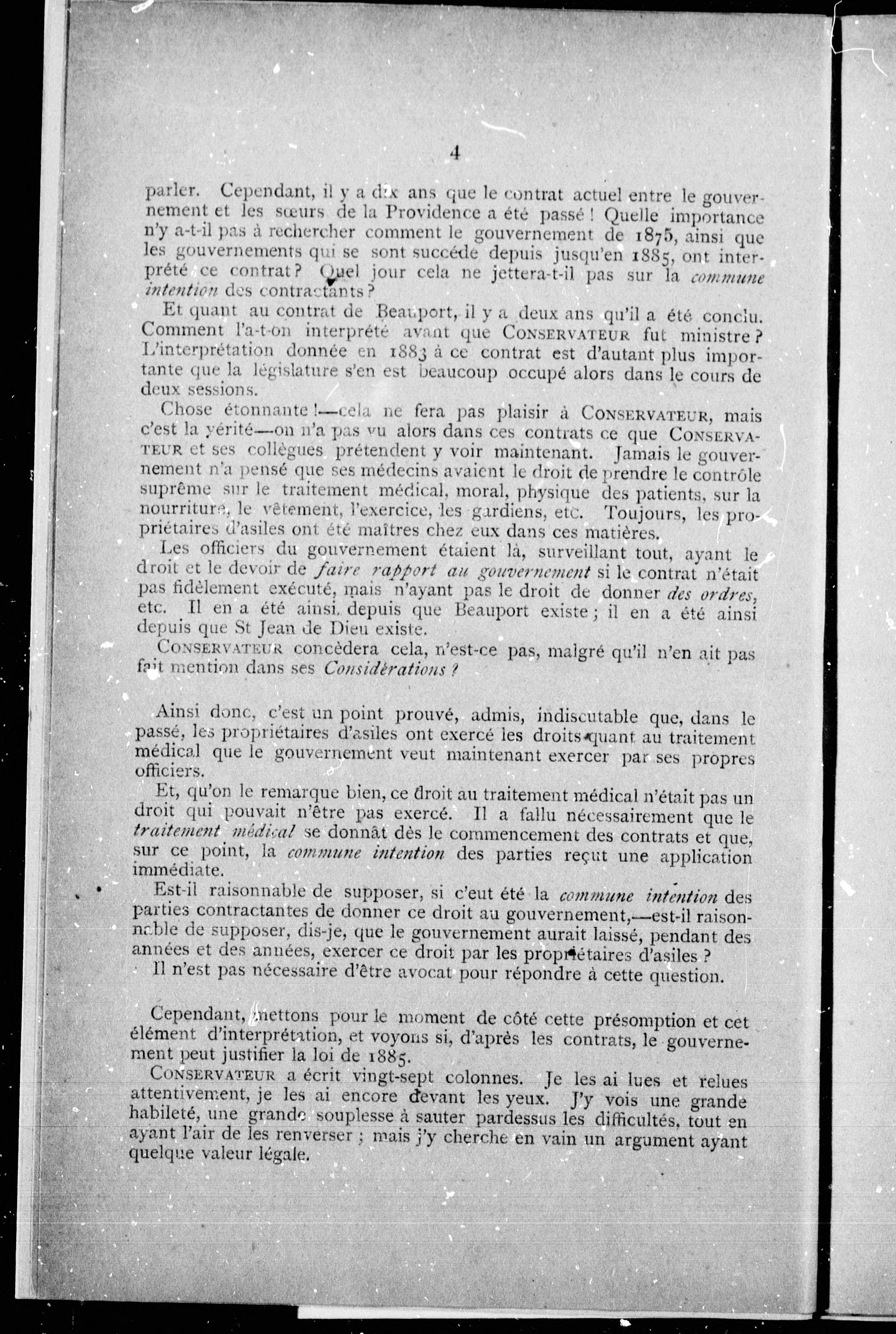- Les asiles d'aliénés de la province de Québec : ré ponse à "Quelques considérations sur la loi de 1885", (48 Victoria, chapitre 34), signées Conservateur.