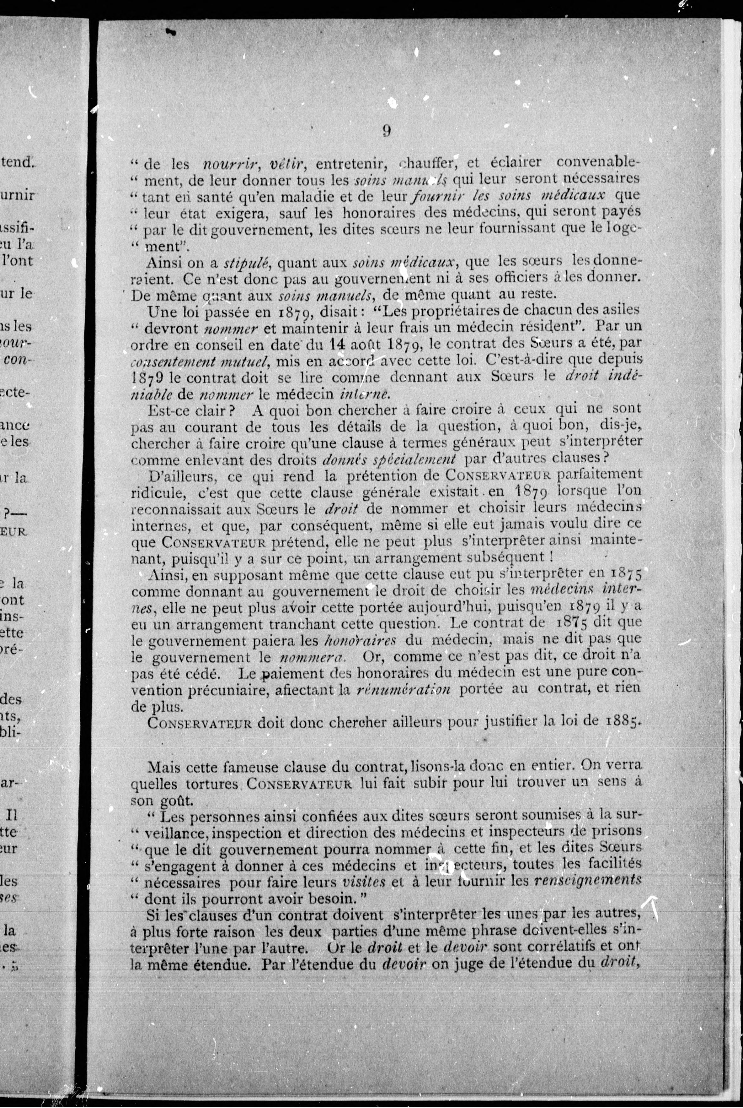 - Les asiles d'aliénés de la province de Québec : ré ponse à "Quelques considérations sur la loi de 1885", (48 Victoria, chapitre 34), signées Conservateur.