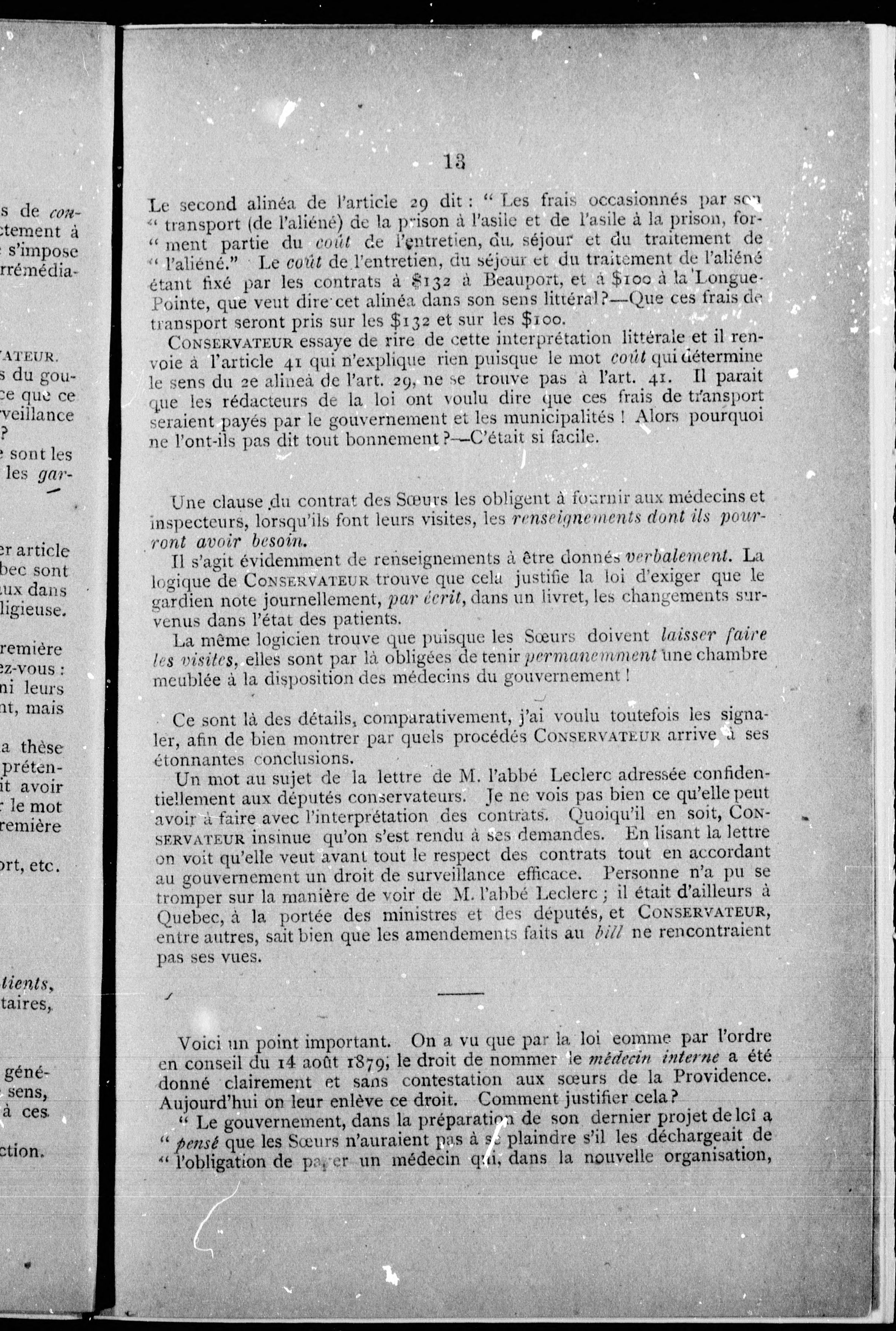 - Les asiles d'aliénés de la province de Québec : ré ponse à "Quelques considérations sur la loi de 1885", (48 Victoria, chapitre 34), signées Conservateur.
