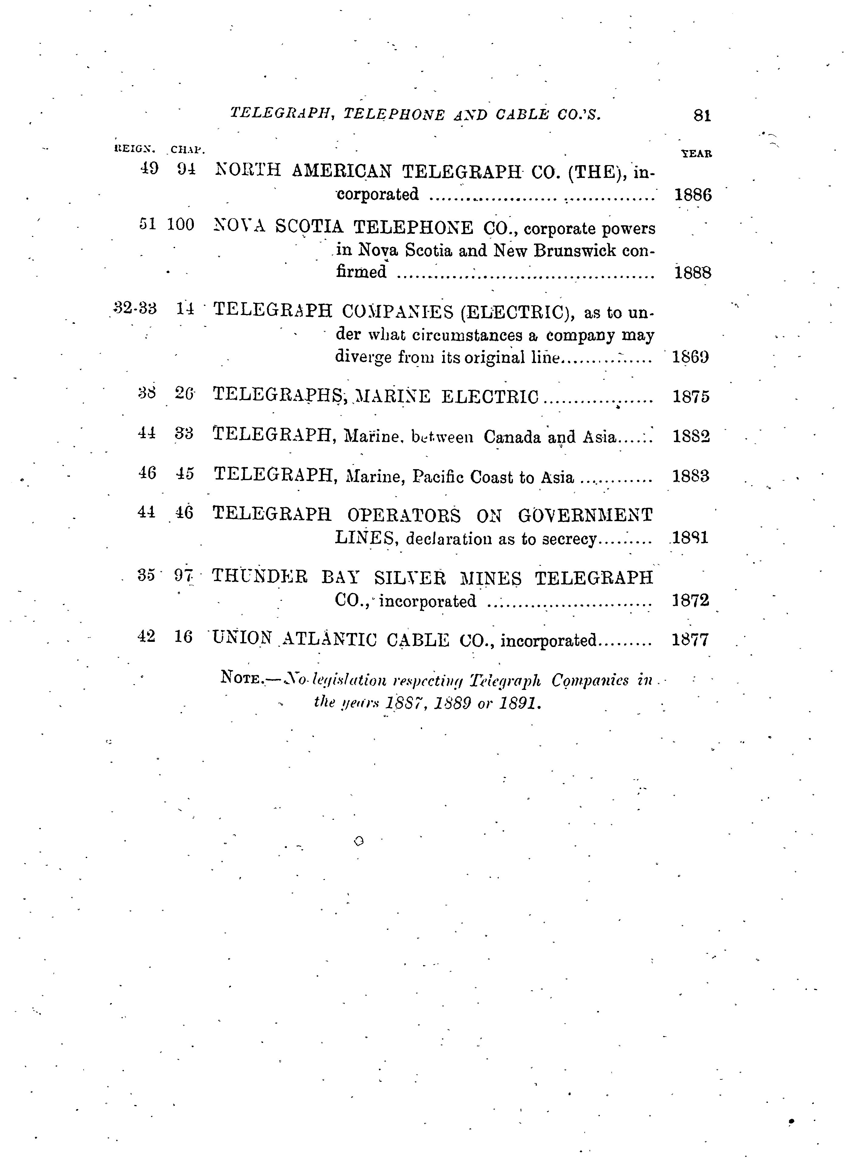 Index to railway legislation of the Dominion of Canada from 1867 to 1897 inclusive