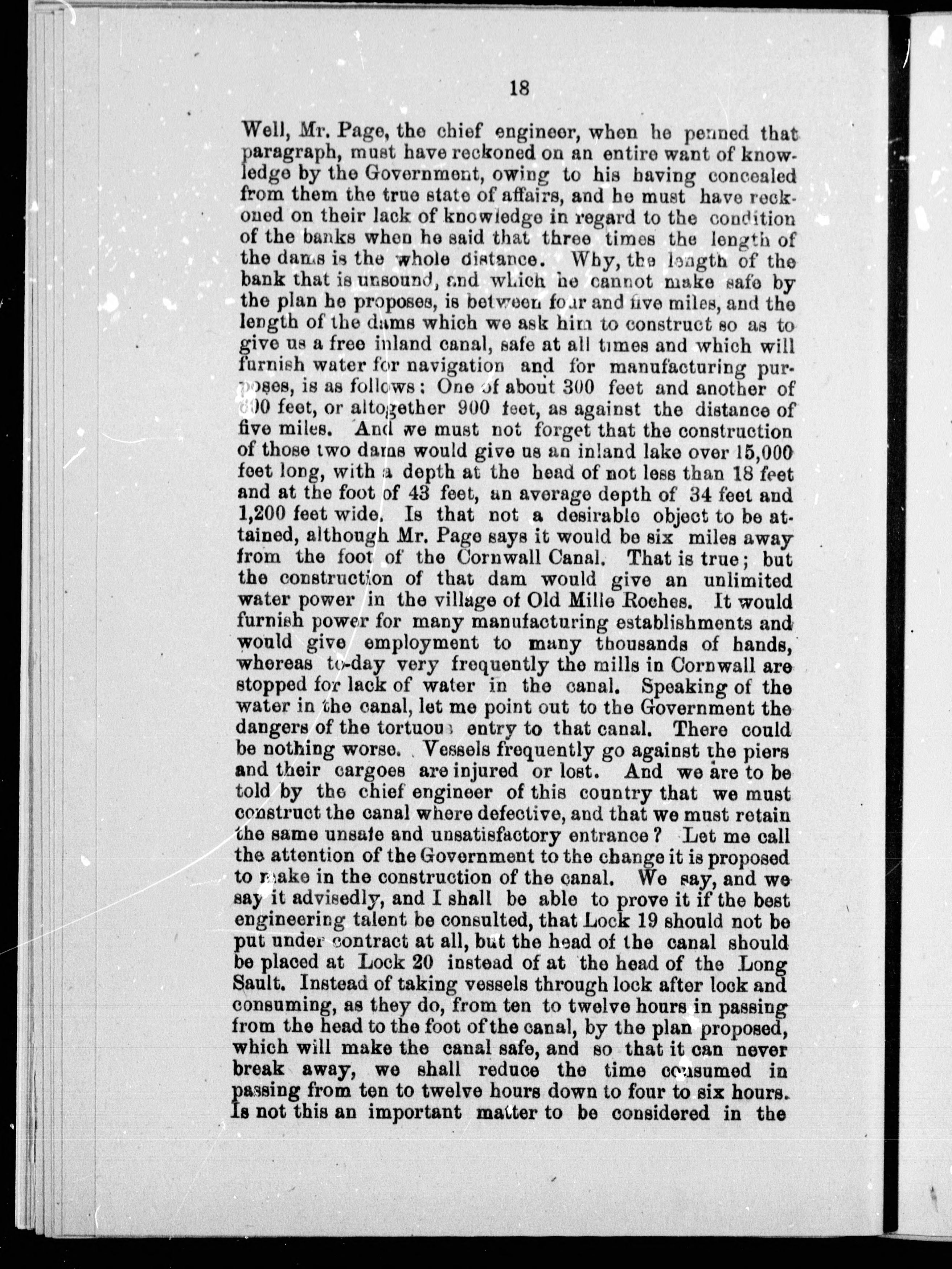 The Cornwall Canal : its location and construction : breaks and present condition : a speech delivered in the House of Commons, Ottawa