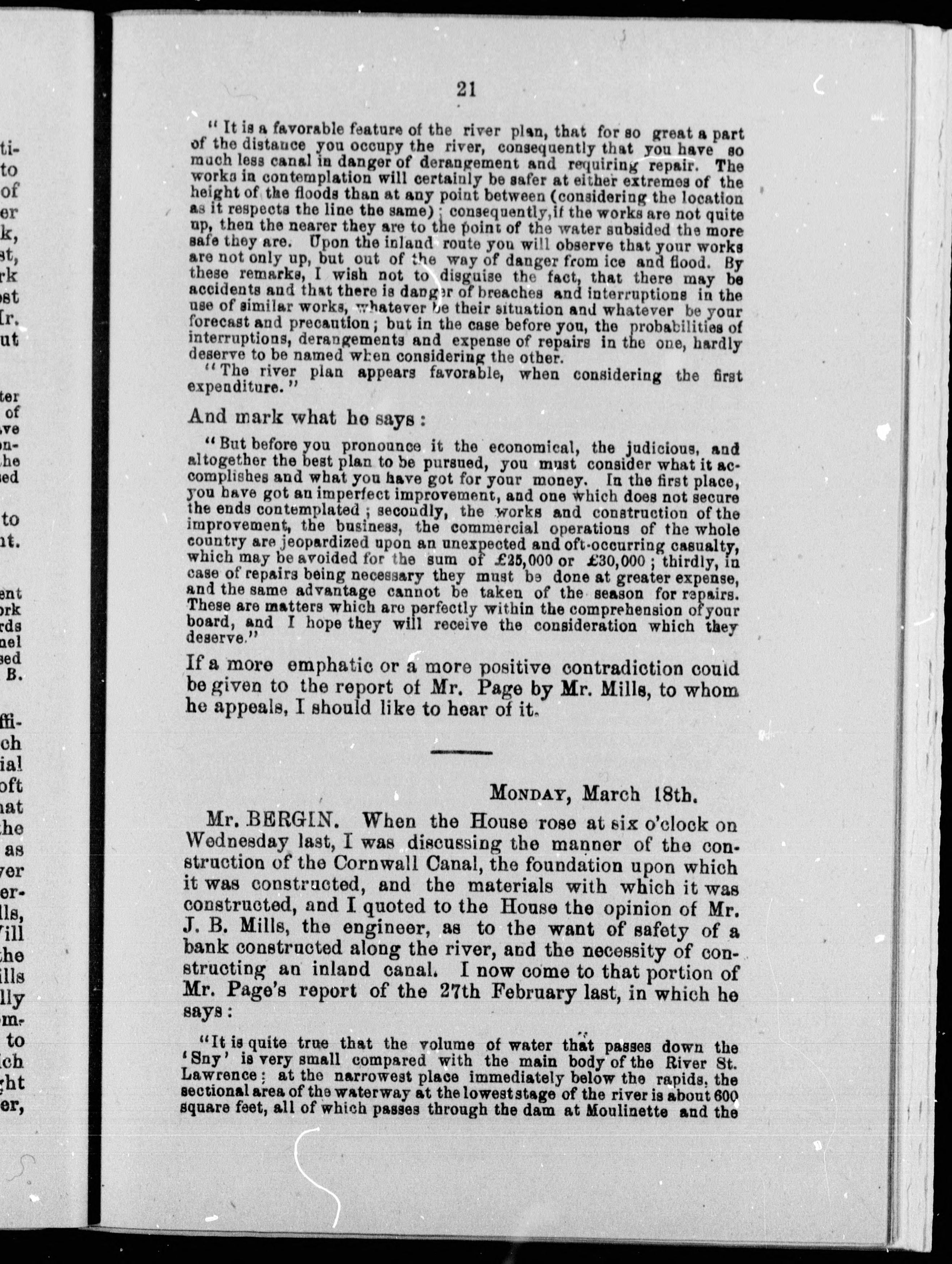 The Cornwall Canal : its location and construction : breaks and present condition : a speech delivered in the House of Commons, Ottawa