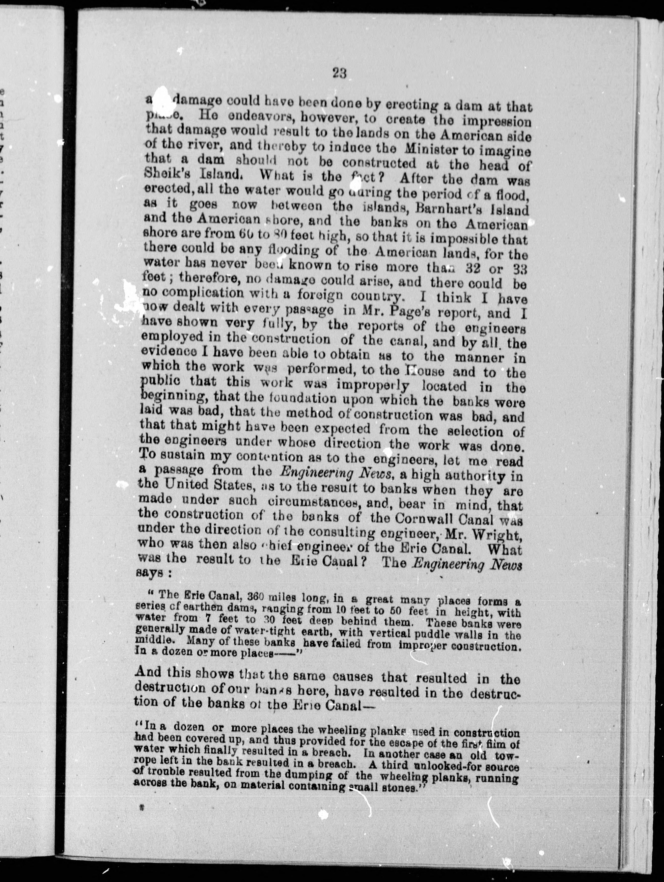 The Cornwall Canal : its location and construction : breaks and present condition : a speech delivered in the House of Commons, Ottawa