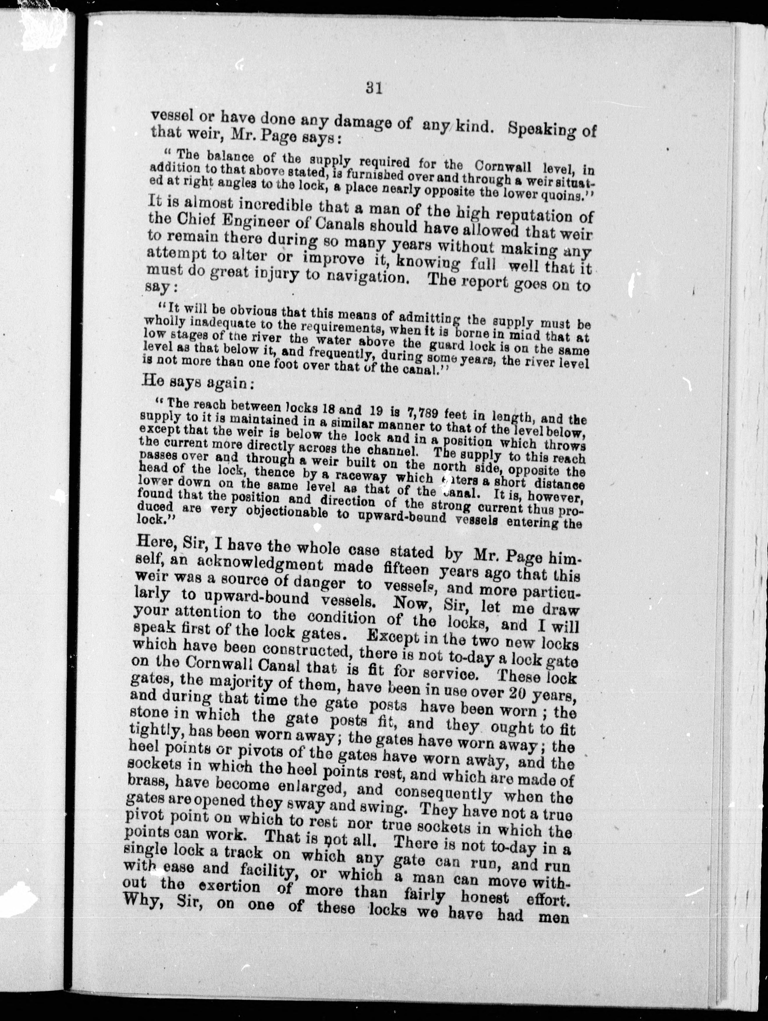The Cornwall Canal : its location and construction : breaks and present condition : a speech delivered in the House of Commons, Ottawa