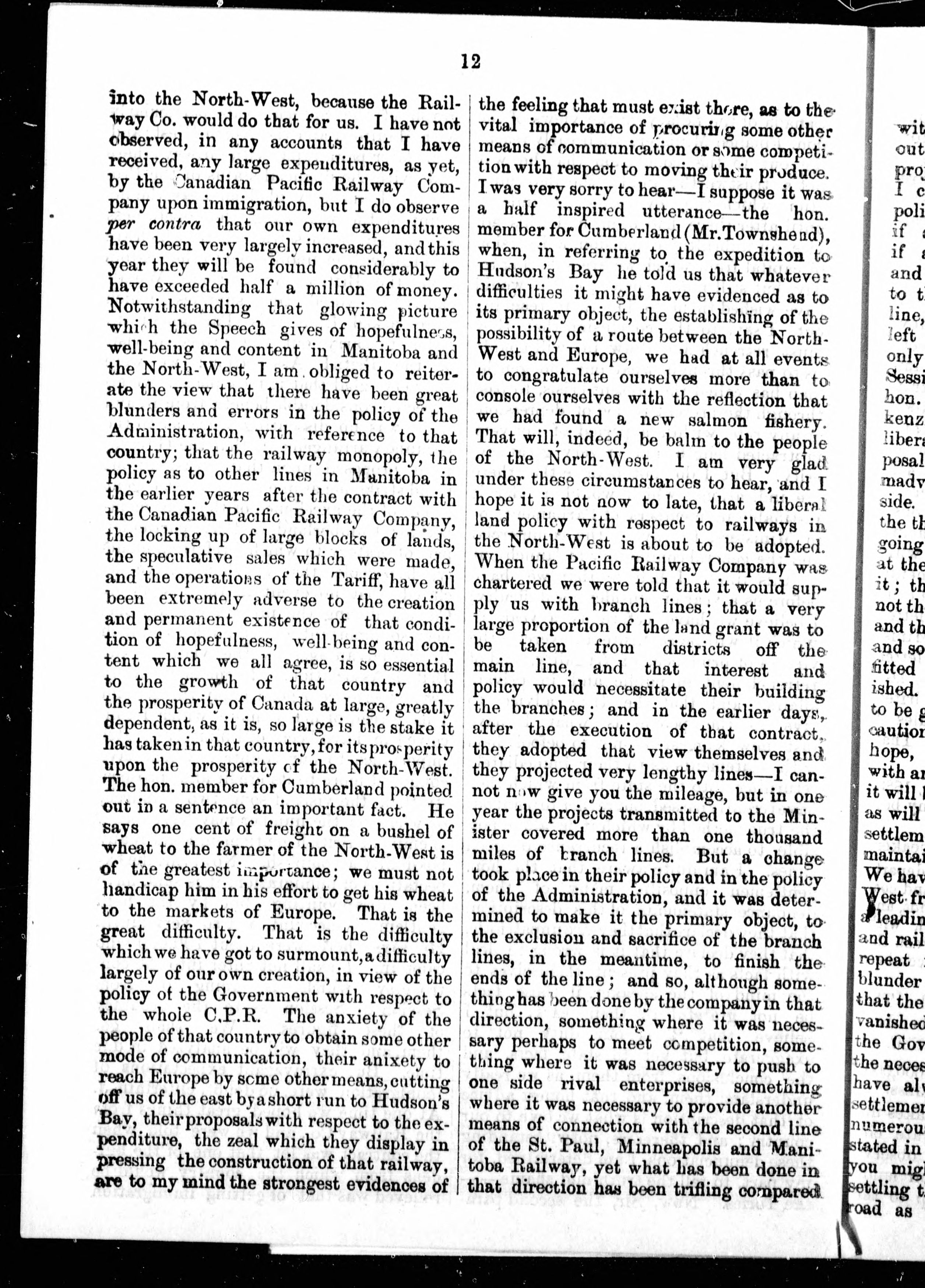 Speech of the Hon. Edward Blake on the address in answer to the Speech From The Throne : delivered in the House of Commons, at Ottawa, on Friday, Jan. 30th, 1885. - Adresse bibliographique