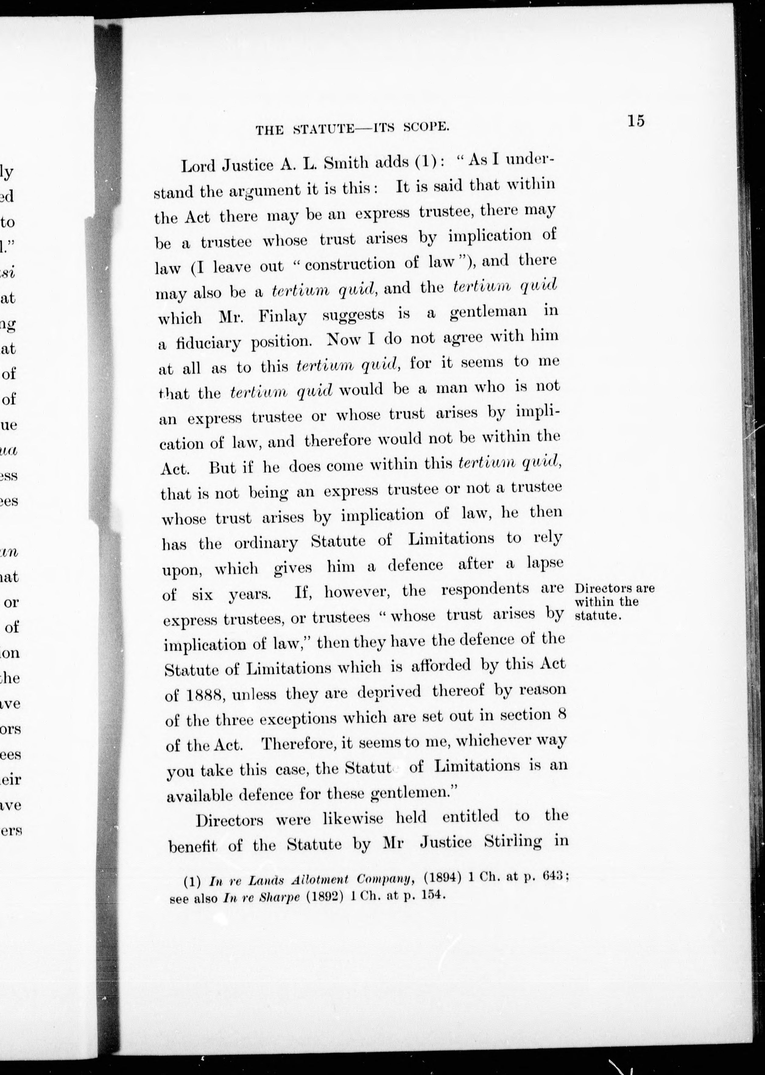 Limitations of actions against trustees and relief from liability for technical breaches of trust : being a concise treatise upon the position of trustees as affected by the Imperial Statute, 51 and 52 Victoriae, cap. 59, section 8, the Revised Statute of Ontario (1897), cap. 129, section 32, The Nova Scotia Statute, 52 Victoriae, cap. 18, section 17, and by the Imperial Statute, 59 and 60 Victoriae, cap. 35, section 3, the Ontario Statute, 62 Victoriae, cap. 15, section 1, the New Brunswick Statute, 61 Victoriae, cap. 26 : with an appendix of statutes, copious references and a very full index