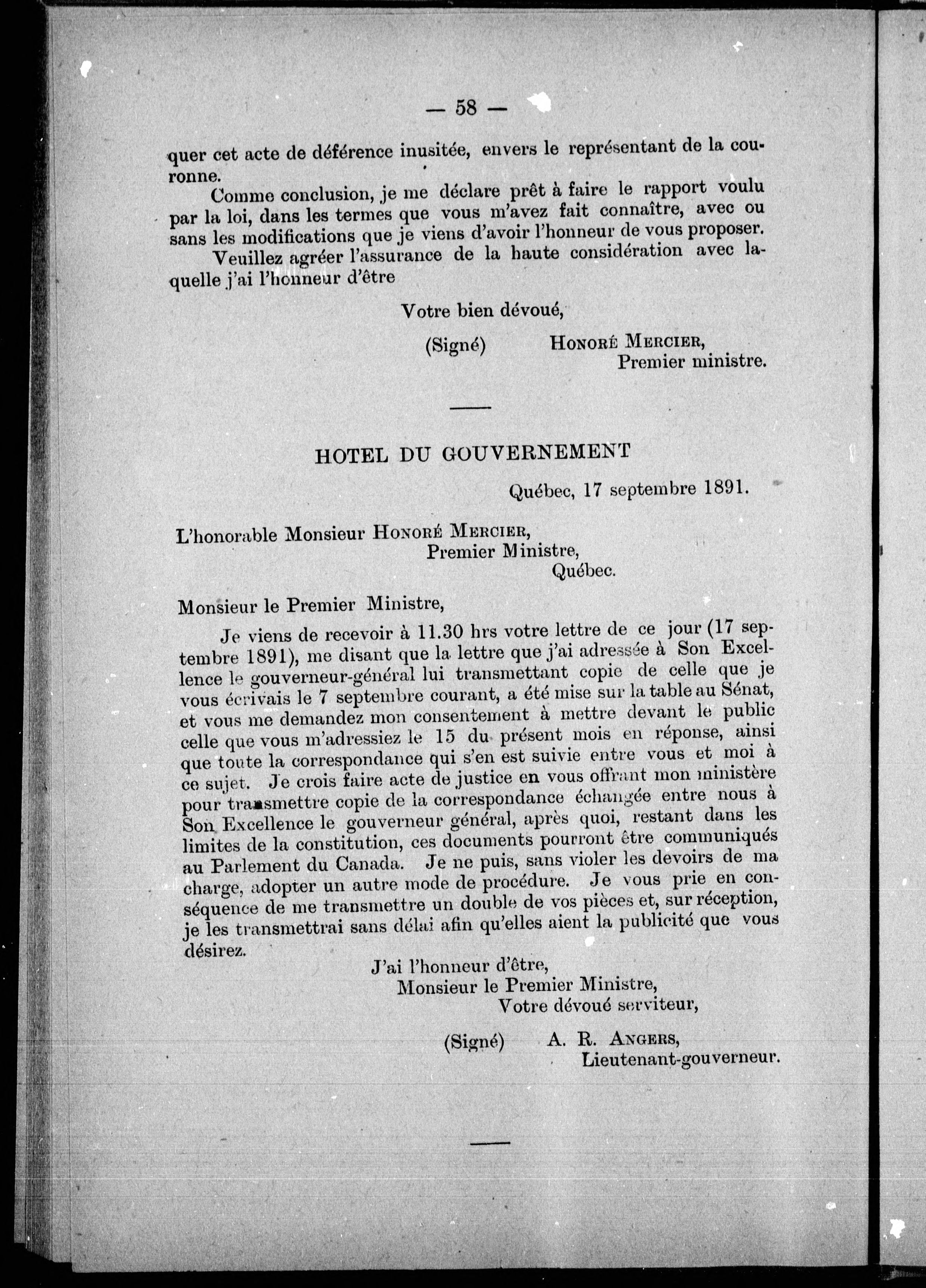 Québec (Province). Lieutenant-gouverneur (1887-1892 : Angers)