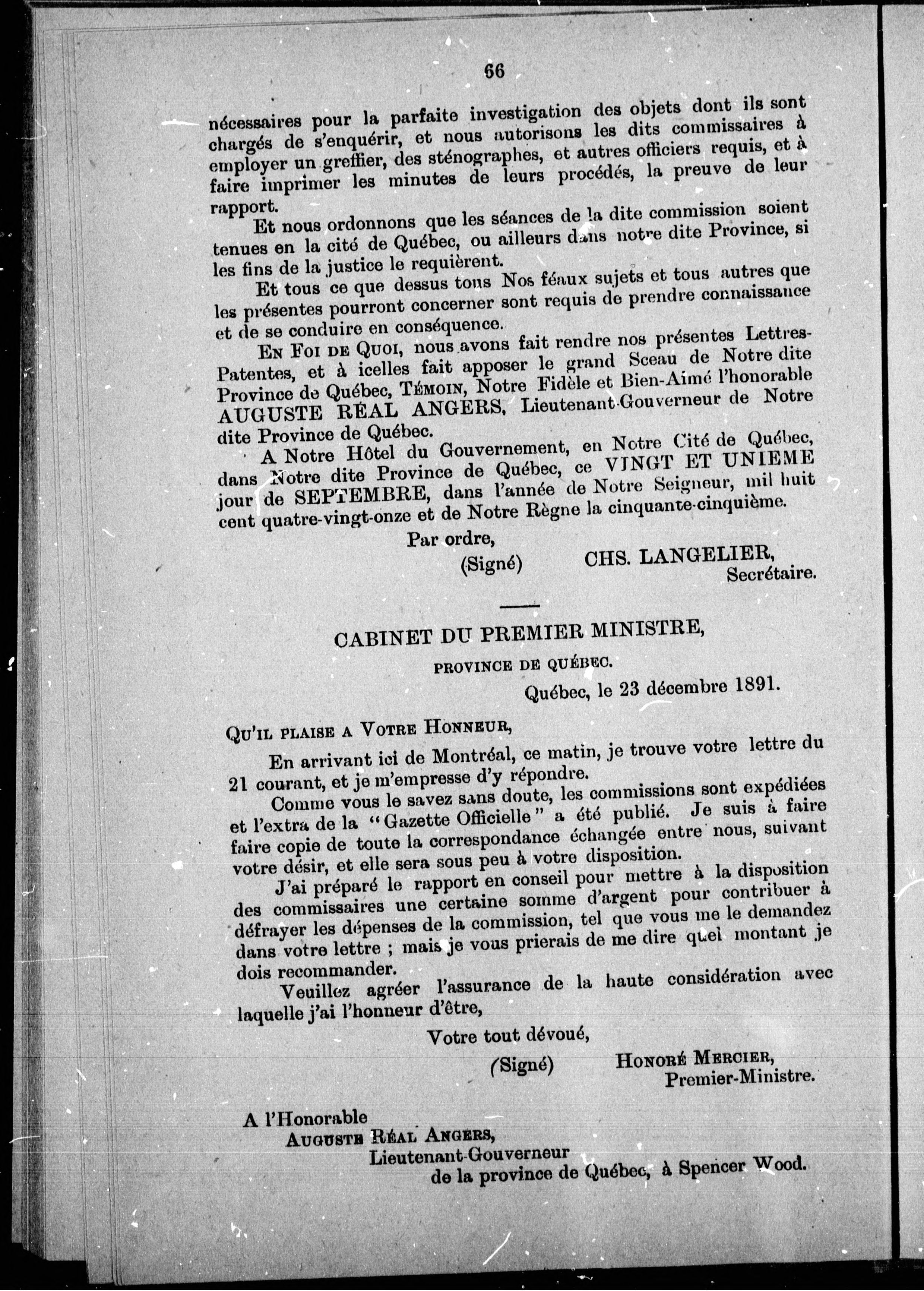 Québec (Province). Lieutenant-gouverneur (1887-1892 : Angers)
