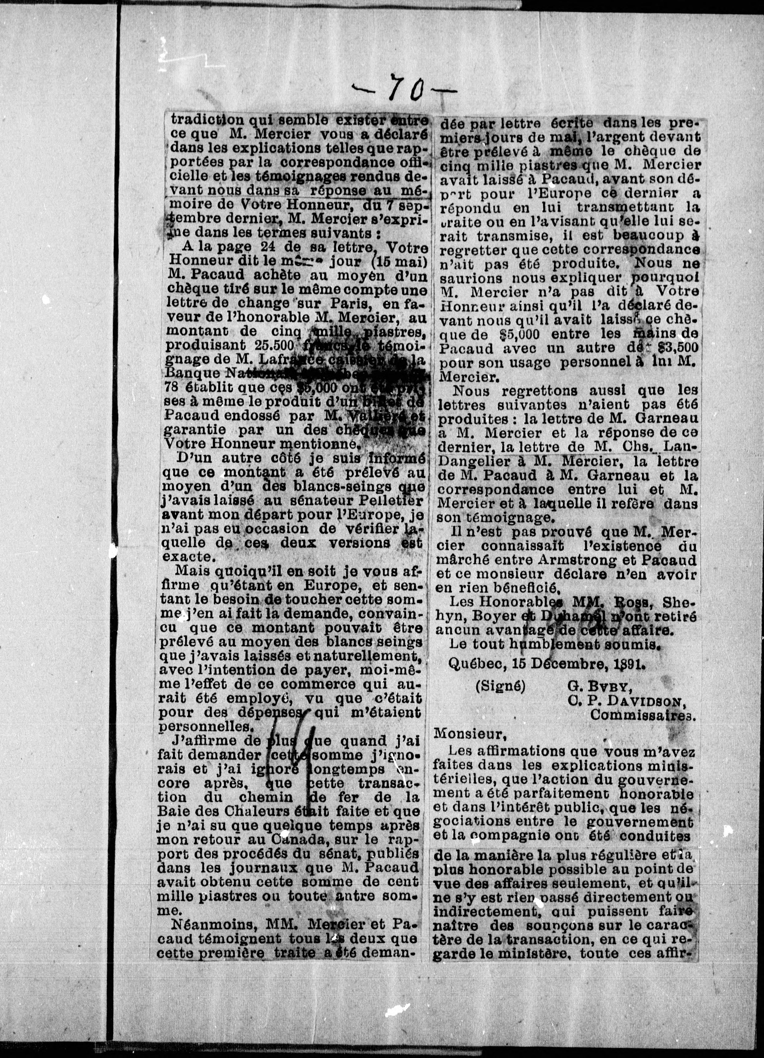 Chemin de fers de la Baie des Chaleurs : dossier officiel complet : correspondance officielle entre Son Honneur le Lieutenant-Gouverneur et M. Mercier, Premier Ministre. - Adresse bibliographique