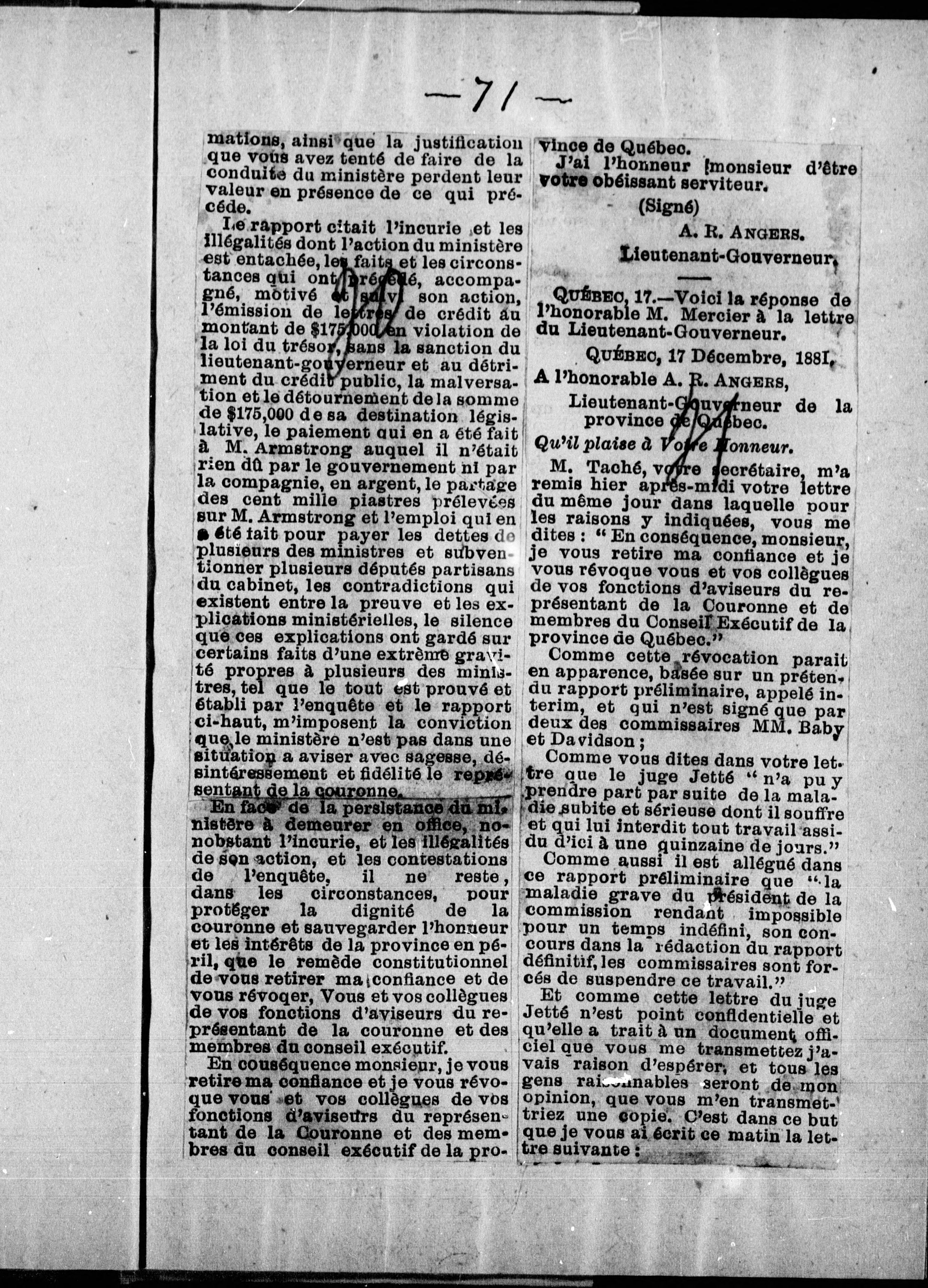 Quebec (Province) -- Politics and government -- 1867-1897. - Document original