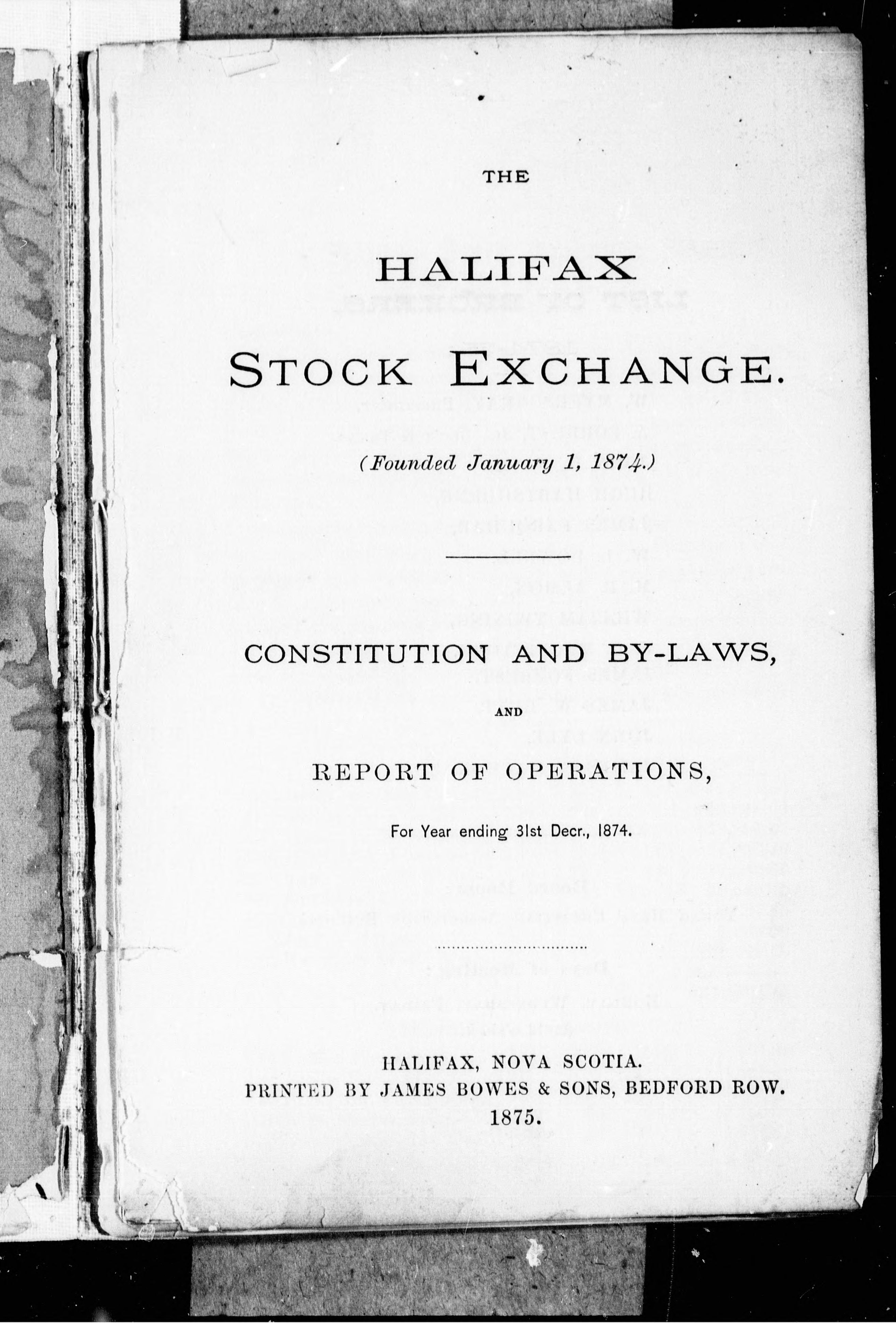 The Halifax Stock Exchange (founded January 1, 1874) : constitution and by-laws, and report of operations, for year ending 31st Decr., 1874. - Published