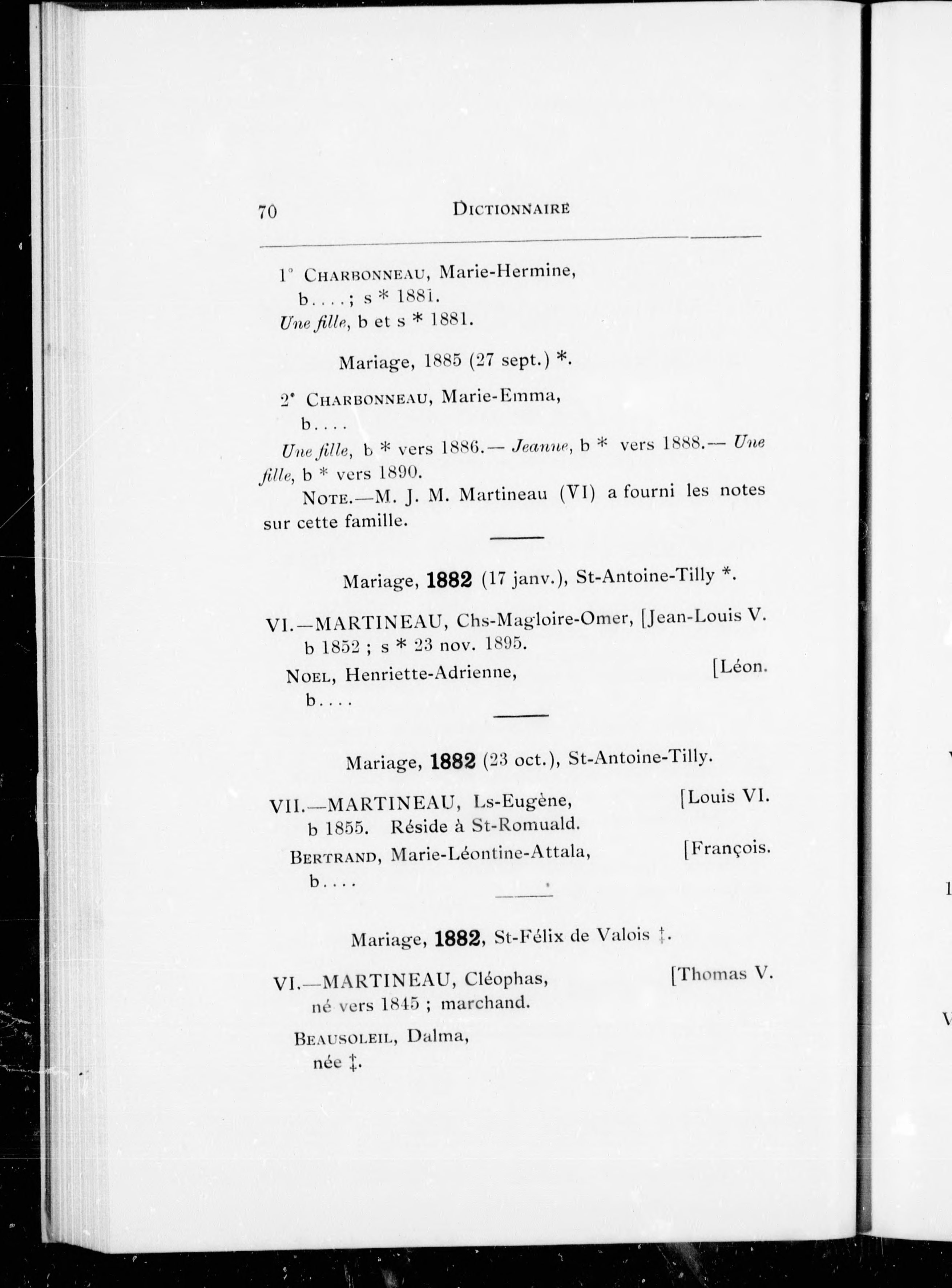 "La première division... est une reproduction, corrigée et augmenté e, du travail de Mgr. Tanguay, ayant trait à cette famille, et qui a paru dans son Dictionnaire Généalogique des familles canadiennes."