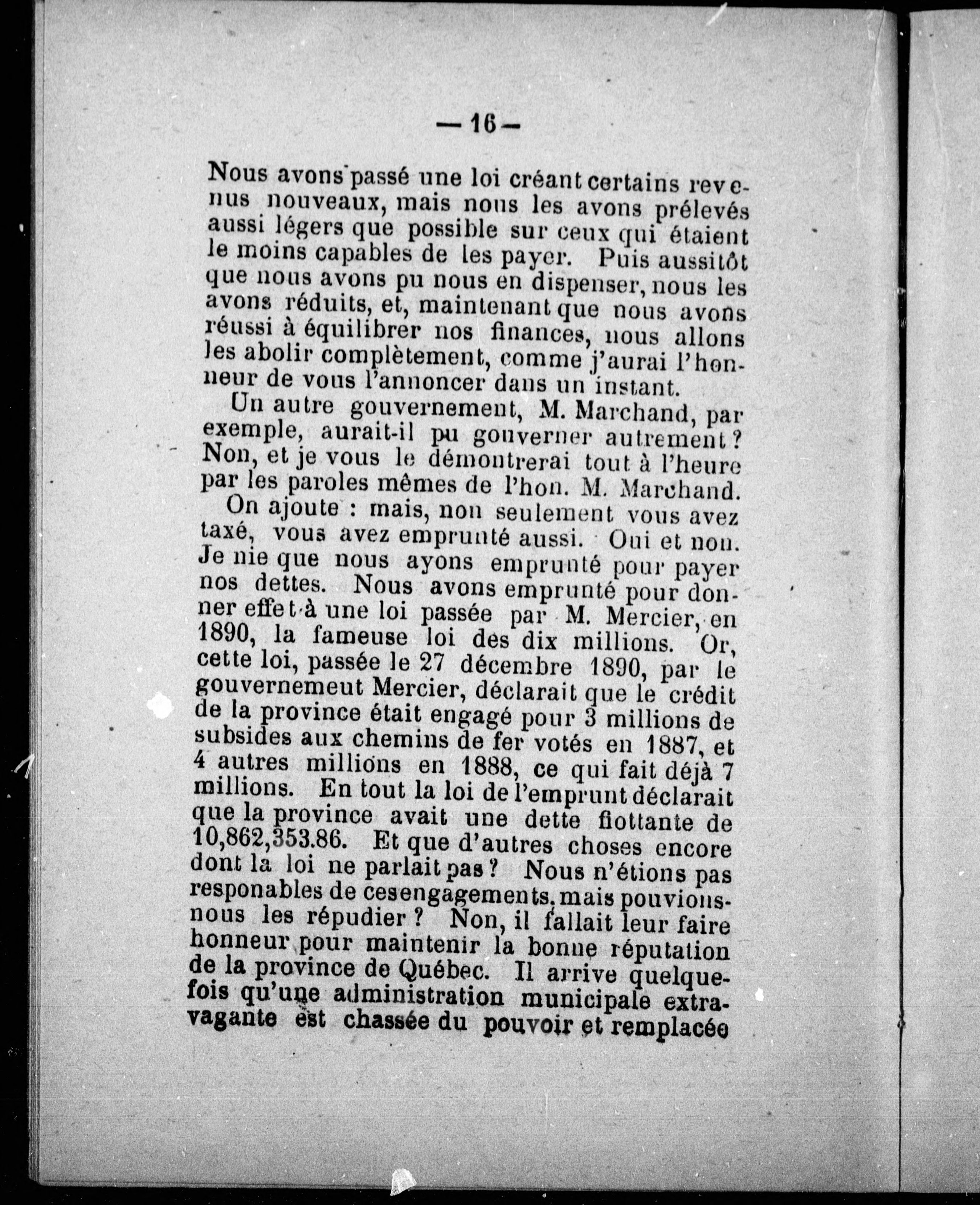 Le gouvernement provincial devant l'opinion : discours-programme prononcé le 6 septembre 1896 à Saint-Jean-Port-Joli