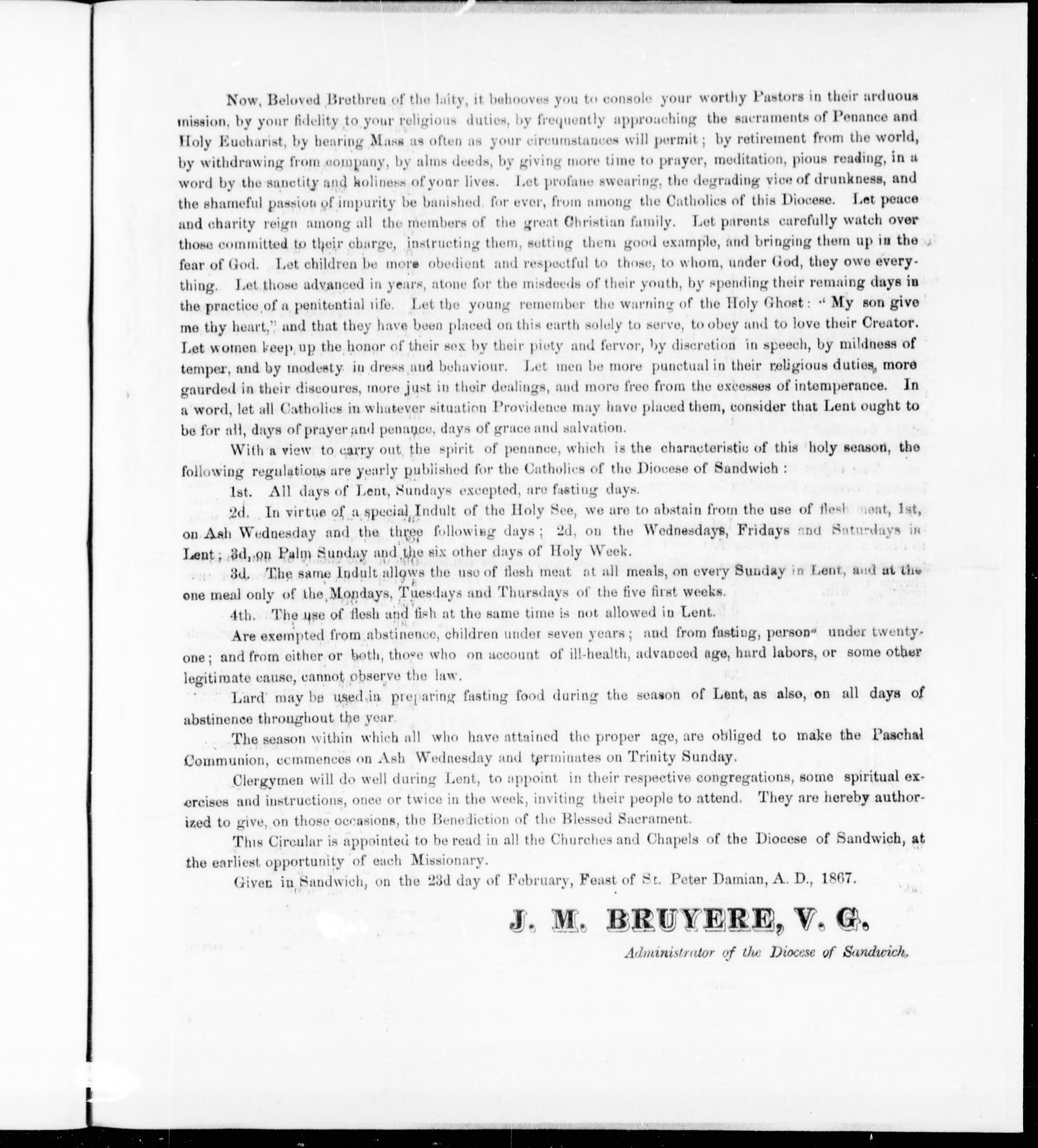 Catholic Church. Diocese of Sandwich. Administrator (1866- 1867) : Bruyère)