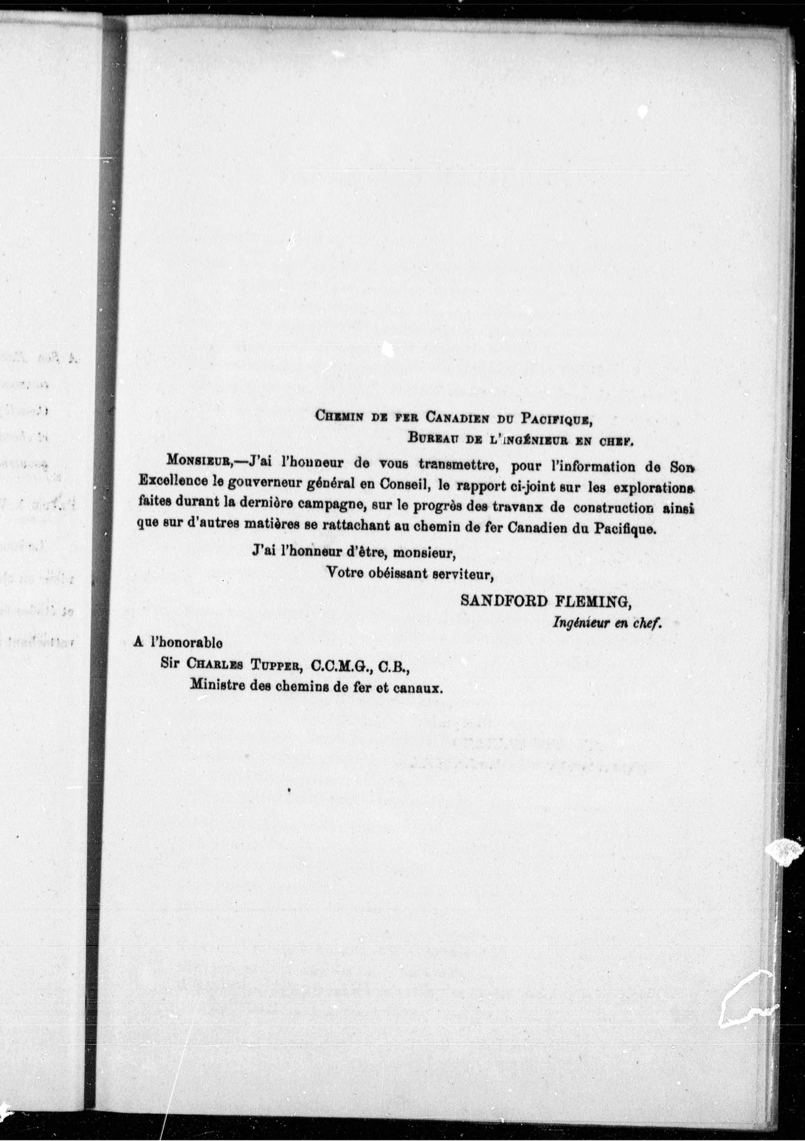 Rapport présenté par Sir Charles Tupper, ministre des Chemins de fer et canaux.