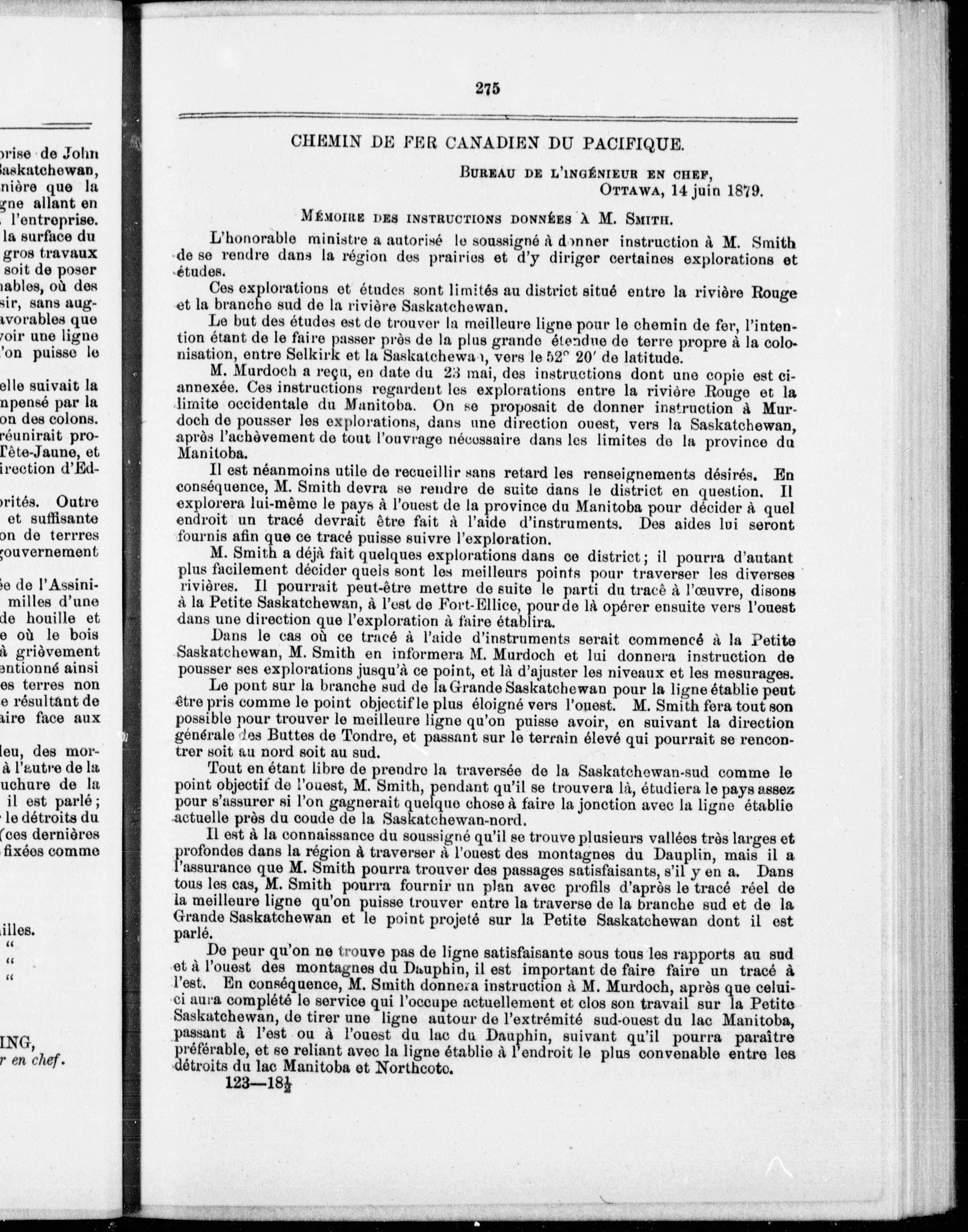 Rapport et documents relatifs au chemin de fer Canadien du Pacifique