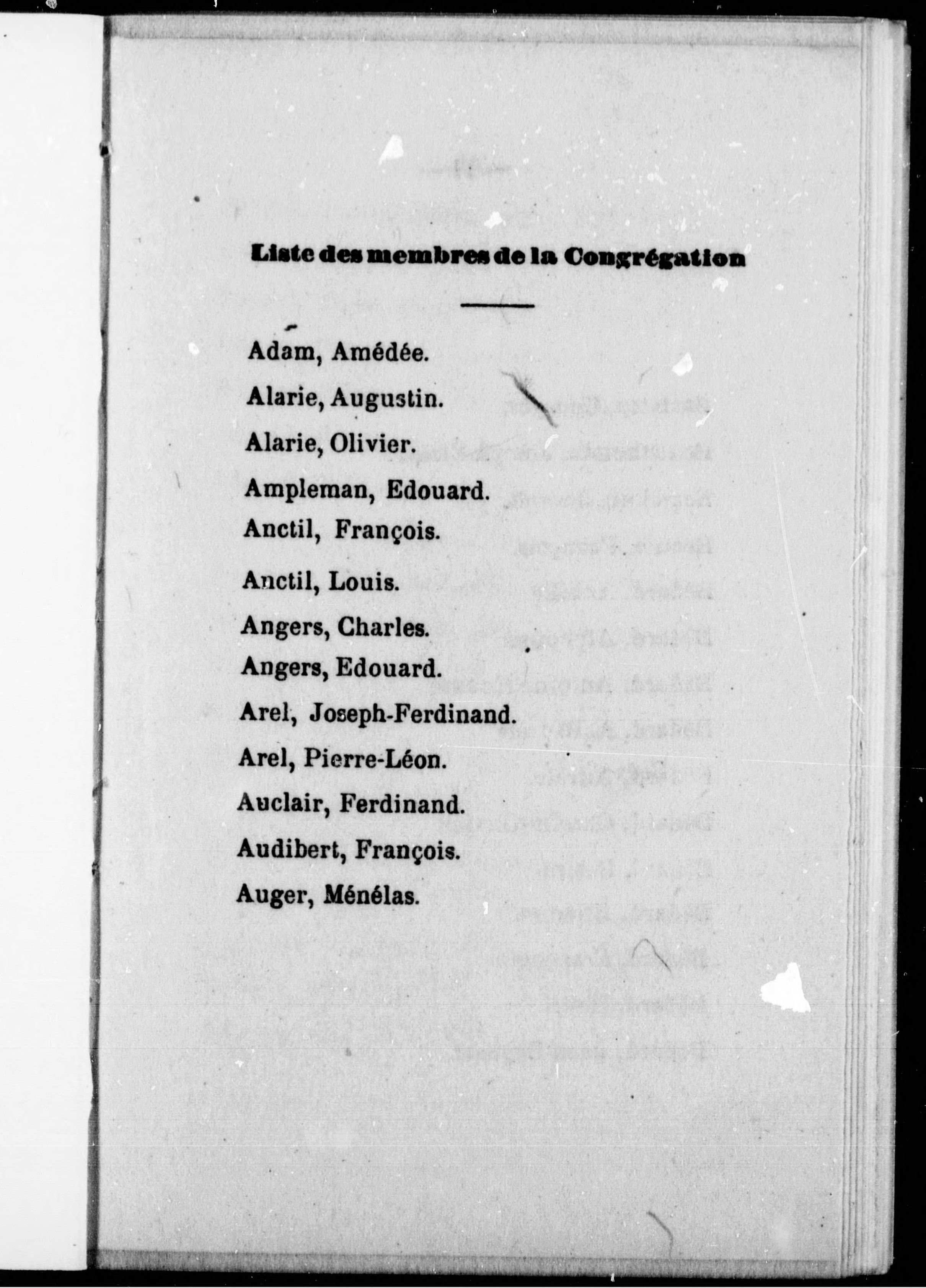 Catalogue des membres de la congrégation des hommes de Saint-Roch de Québec, fondée le 24 decembre 1839 par Monsieur l'abbé Zéphirin Charest, curé de St.-Roch.